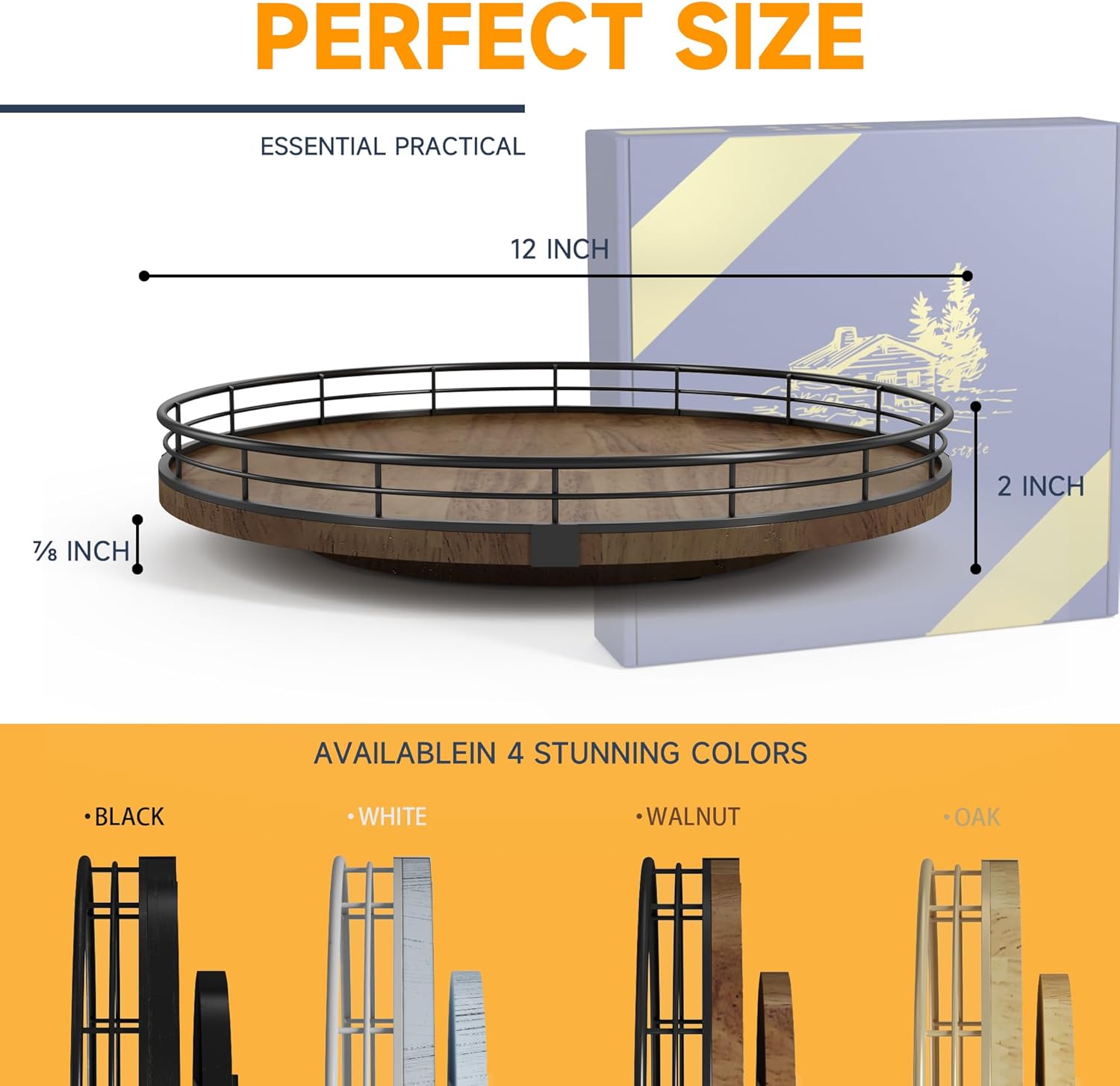 Farmhouse Oak 12" Lazy Susan Turntable Organizer for Cabinet, Round Wooden Lazy Susan Organization and Storage for Dining Table, Pantry, Kitchen, Countertop, Cupboard,Home Decor, Walnut Wood