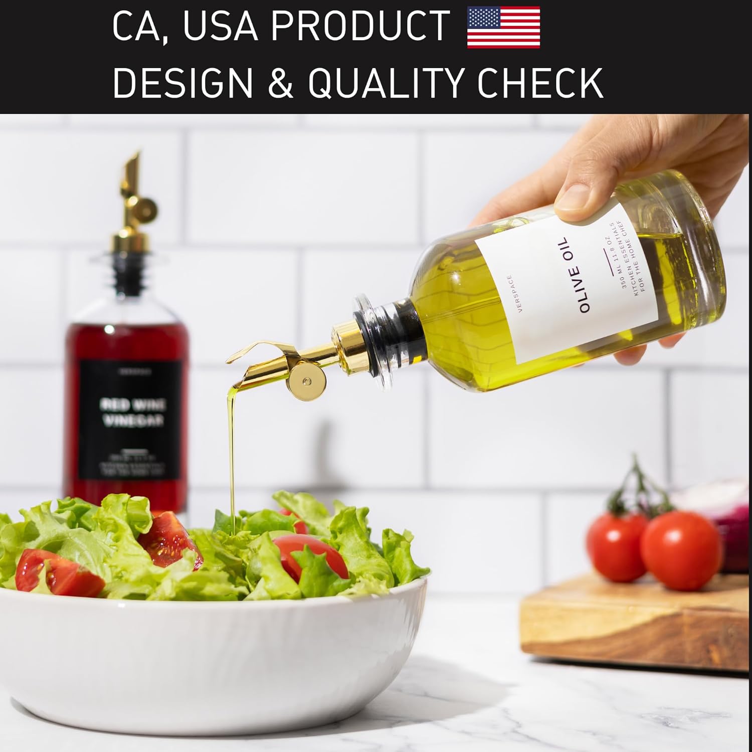 Olive Oil Dispenser Bottle For Kitchen With Silicone Tray & 40 Labels, Soy Sauce Dispenser, Coffee Syrup Dispenser, Olive Oil Bottles Set Of 2, Gold