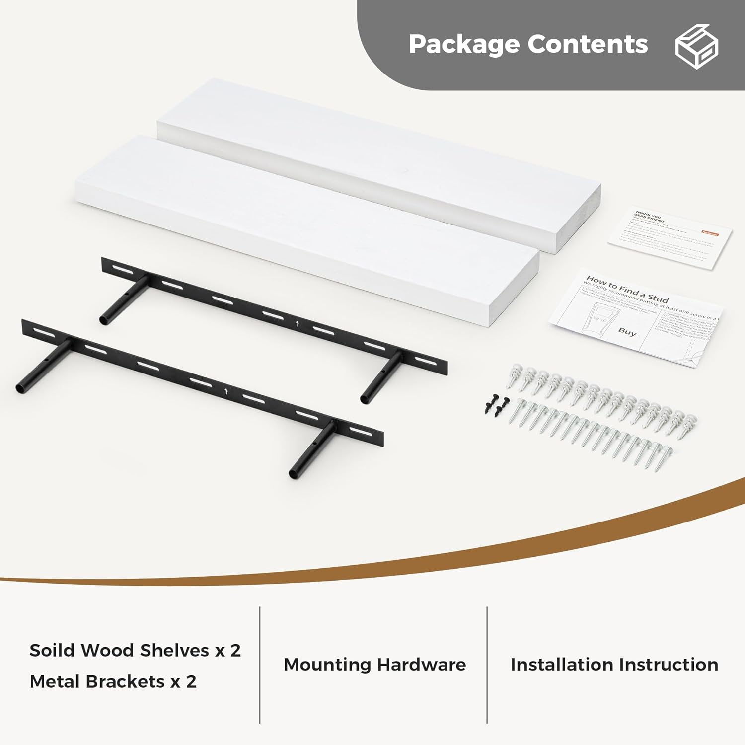 - Excellent Storage & Décor - Each board measures 24"L x 5.7"W x 1.3"H, hold up to 50 lb. This floating shelf taking up zero square feet, reduces clutter and highlights décor in compact spaces. It can help make full use of the empty wall, which is much more space-saving and makes your room look larger and tidier.