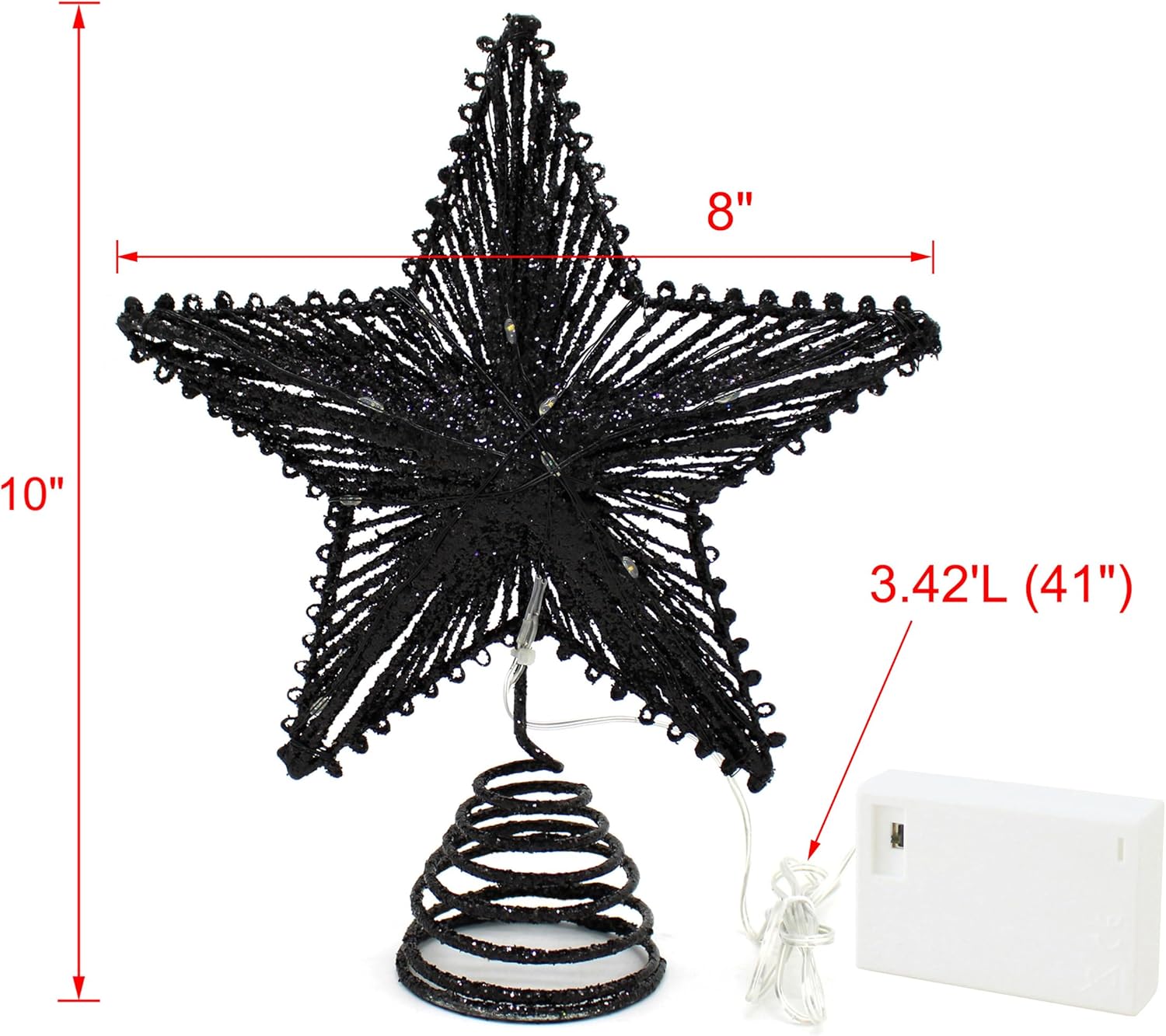 CVHOMEDECO. Tree Top Star with Warm White LED Lights and Timer for Christmas Ornaments and Holiday Seasonal Décor, 8-Inch (Black)