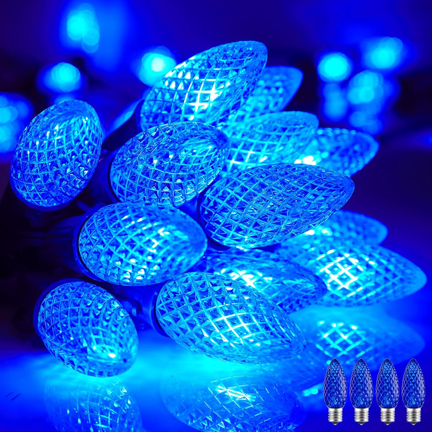 - Super Bright Vivid Lighting and Rectified: These commercial C9 string lights come with 100 led strawberry shatterproof c9 bulbs. Each c9 bulb with built-in high brightness SMD LED light bar and highly water sealing husk.the rectifier equipped inside the bulb base for preventing strobe lighting and Bring you better lighting effects, adding holiday cheer and warm atmosphere