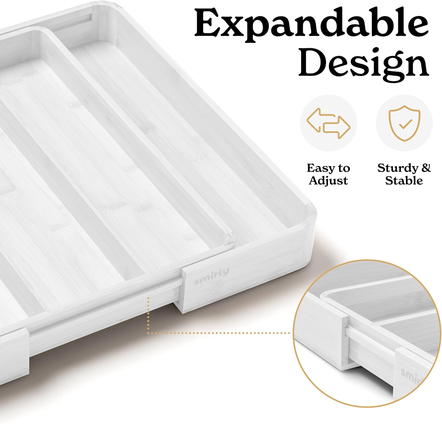 SMIRLY Silverware Drawer Organizer – Bamboo Kitchen Drawer Organizer, Adjustable Utensil Holder and Cutlery Tray, Drawer Dividers for Flatware and Kitchen Utensils