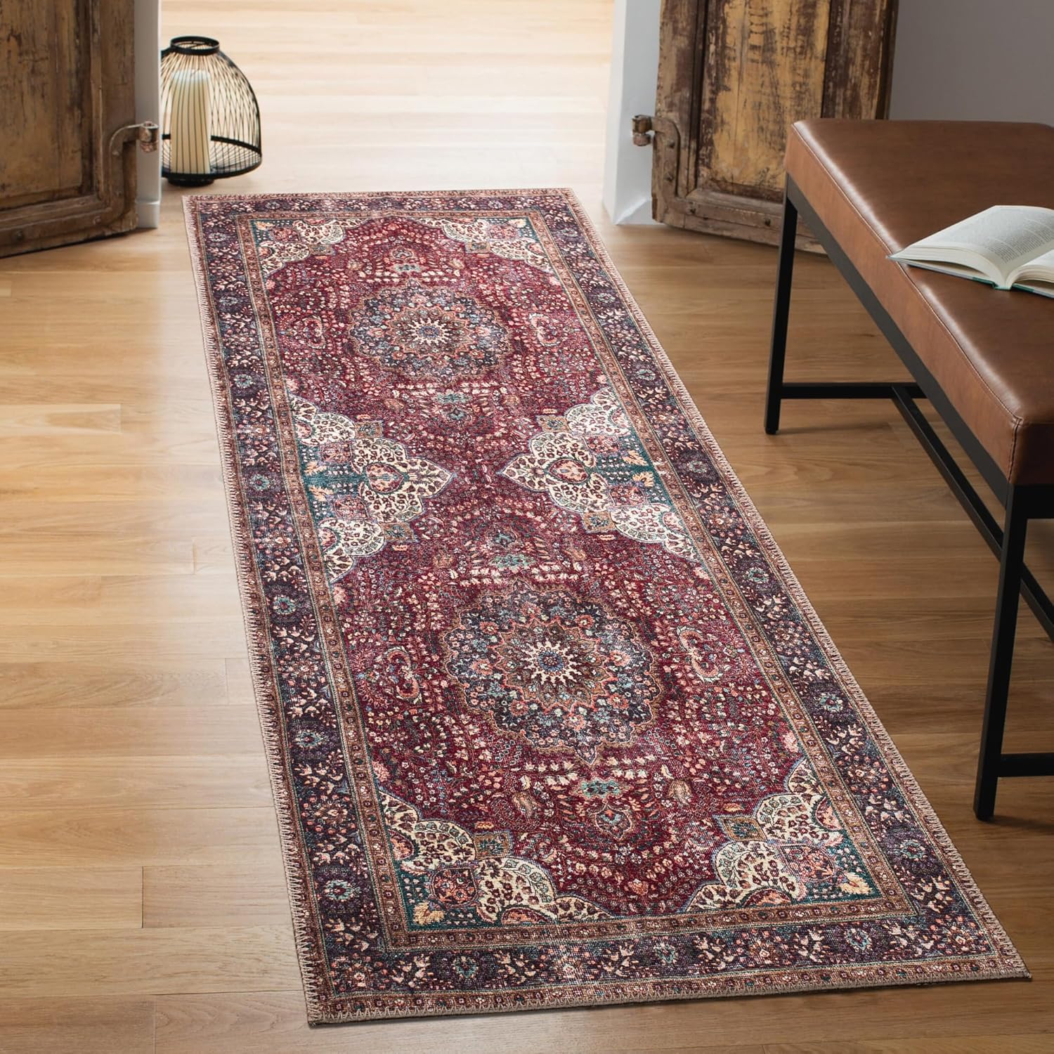 Keen Home Design 2x12 Rug - Machine Washable Runner Rug with Non-Slip Backing, Ideal for Hallway, Entryway, Kitchen, Laundry Room - Vintage, Easy Clean, Durable, Low Pile - (2'6" x 12')