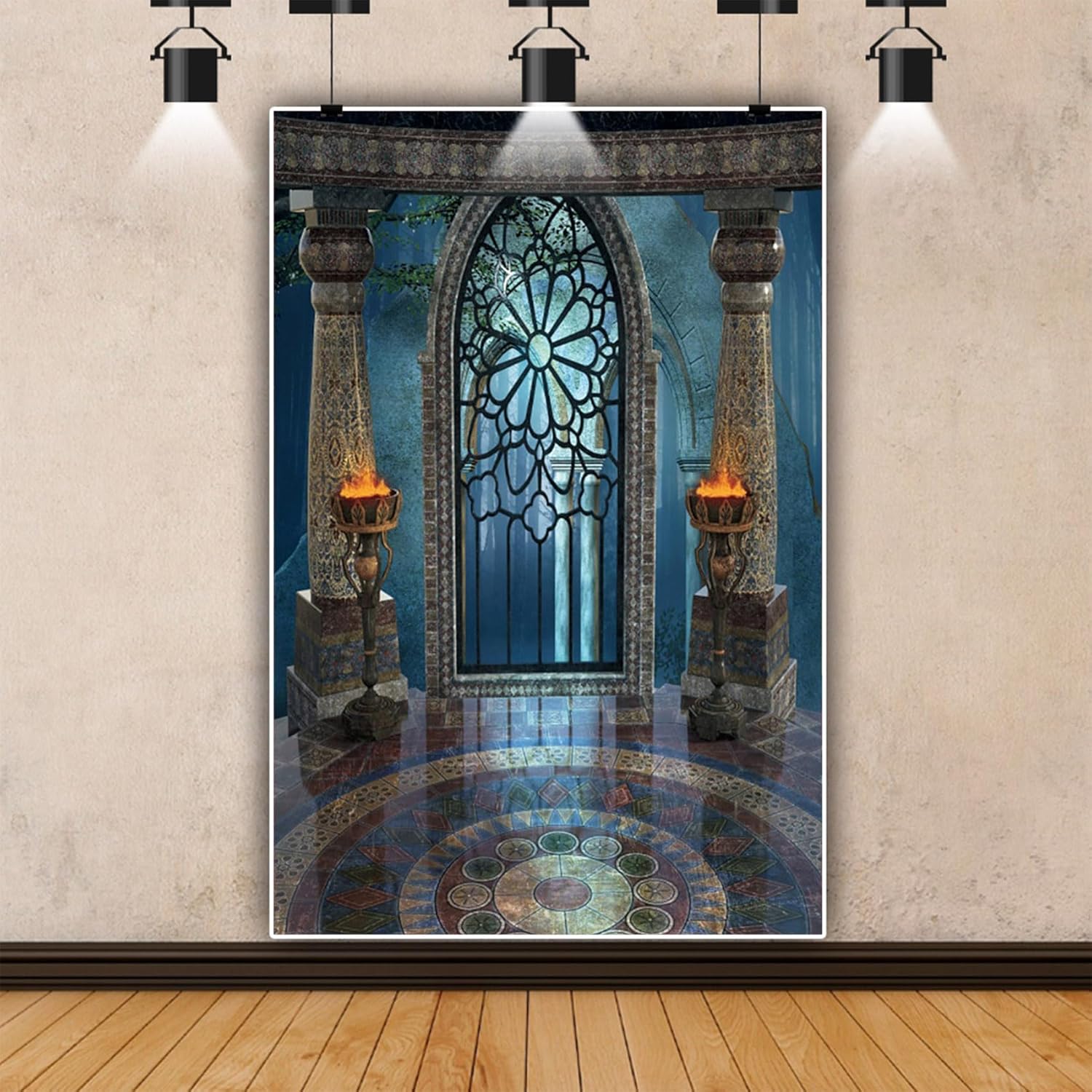 Renaiss 10x15ft Medieval Castle Backdrop for Photoshoot Portrait Pillar Torch Gothic Stone Tower Ancient Old Fortress Interior Photography Background Halloween Party Decor Wallpaper Photo Studio Props