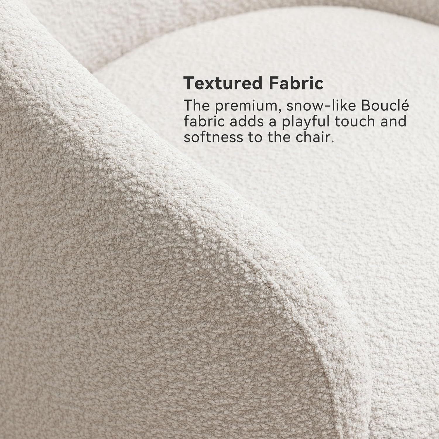 - Premium Boucle Fabric: The boucle upholstered swivel barrel chair is covered in a premium boucle fabric that not only looks great but also feels cozy and soft to the touch. The texture of the boucle fabric adds an extra layer of comfort to the chair, making it a great option for anyone looking for a comfortable seating option.
