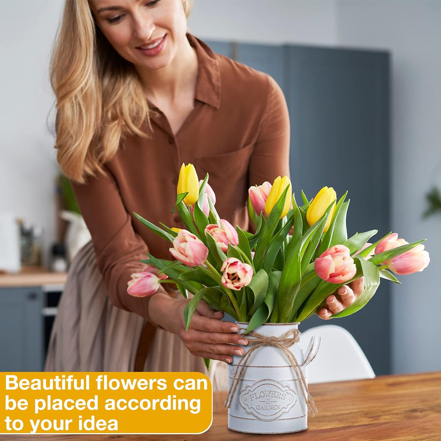 - Vintage Aesthetic Appeal: the galvanized vase has a vintage style that blends rustic charm with elegance; The distressed paint finish bestows an impressive appeal that not only grasps attention but adds a distinct touch of farmhouse style to your home or space