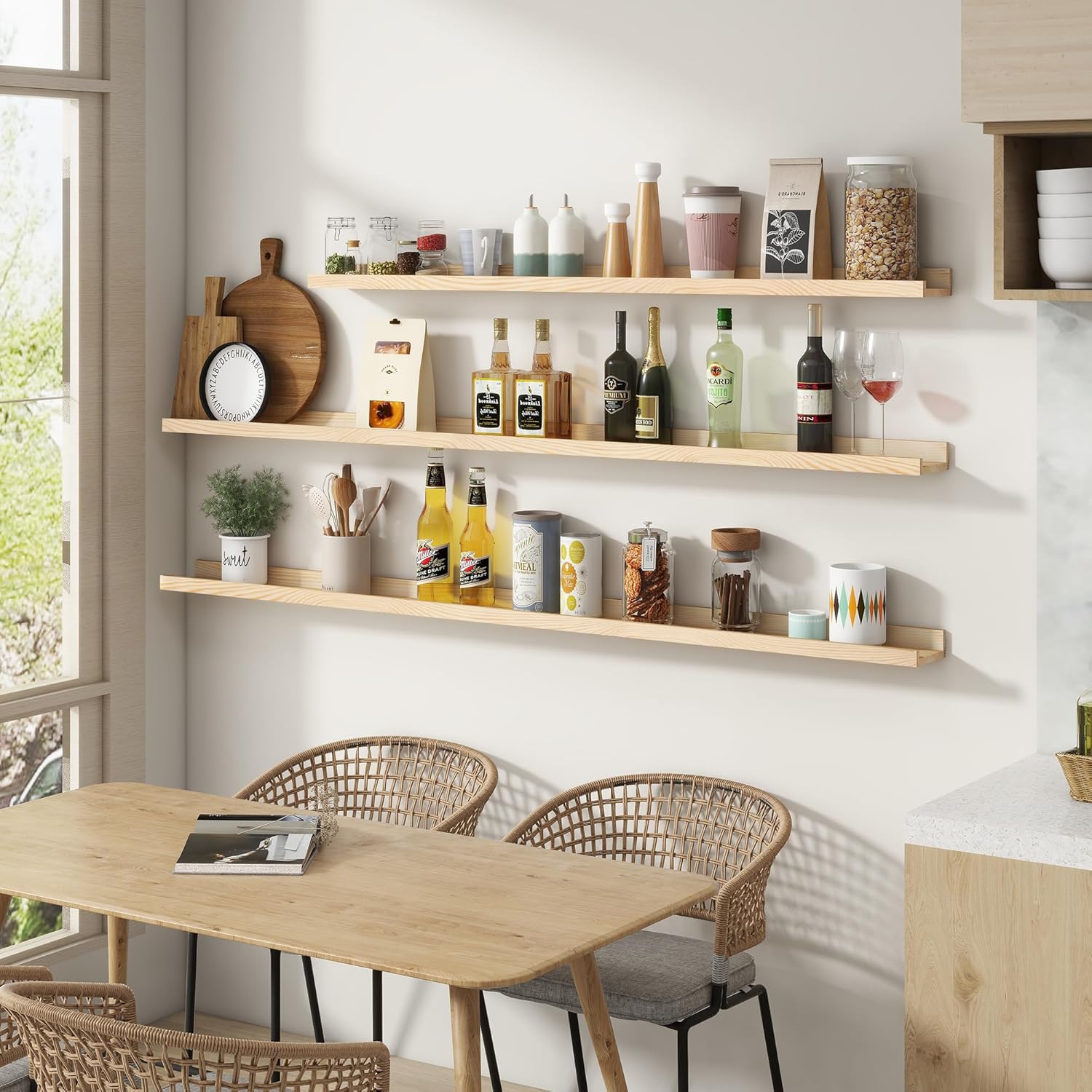- Solid Pine Wood Shelves: We use solid pine wood with glamorous texture but not all trees come with intensive grain. That’s why we hand-pick the pieces with beautiful wood knots and wood grain, bringing a unique feel and look into your living space. We hand-craft selected wood pieces and feature a rustic natural wood finish so that it has a long life. Every shelf is unique in grain, color, finish, and texture