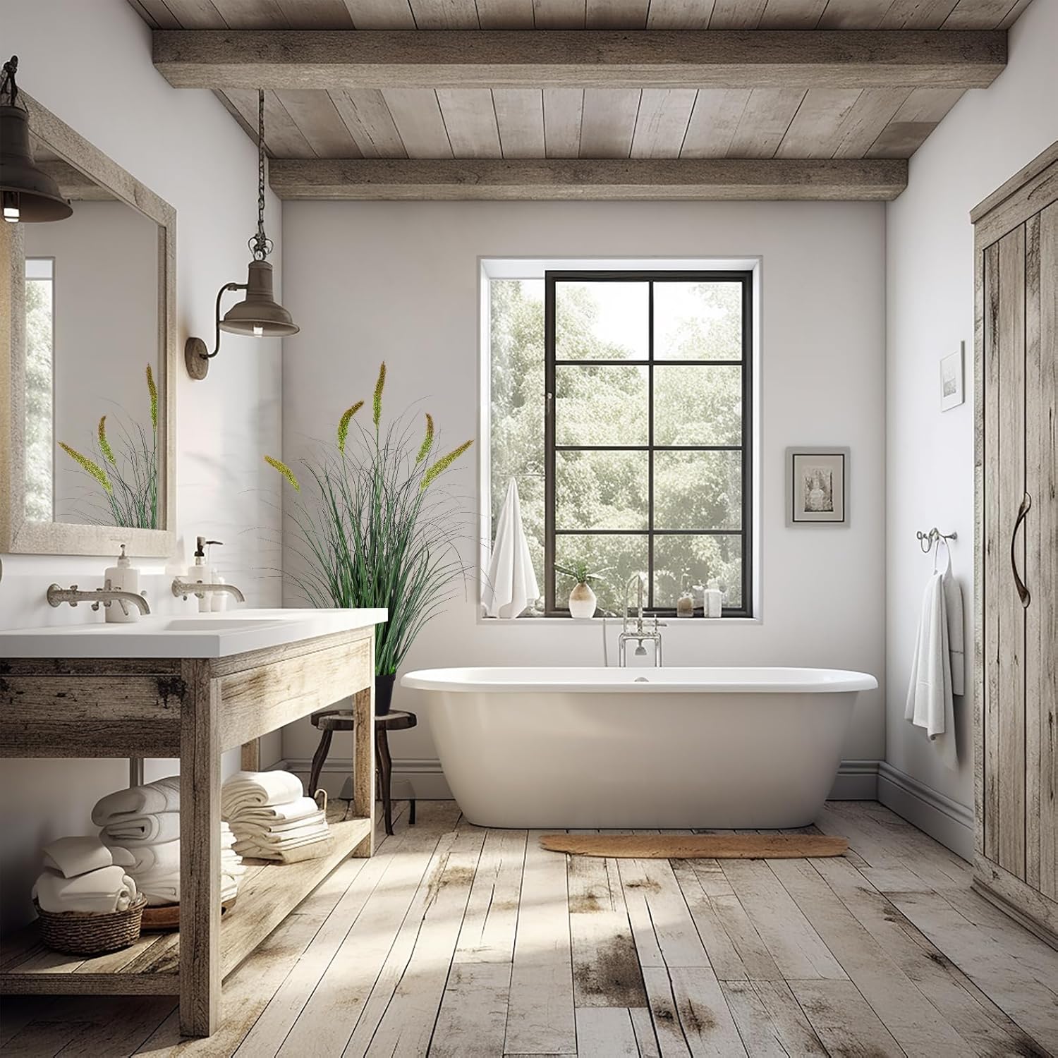 - 🌾SUITABLE FOR INDOOR AND OUTDOOR USE: artificial tall grass cattails woods are suitable for both indoor and outdoor use any corner of a room or garden adds a stunningly realistic decorative effect that everyone will marvel at. Bring natural elegance and beauty to any space, perfect for home, office or garden decoration.cat tails artificial flowers is the perfect gift for your loved ones.