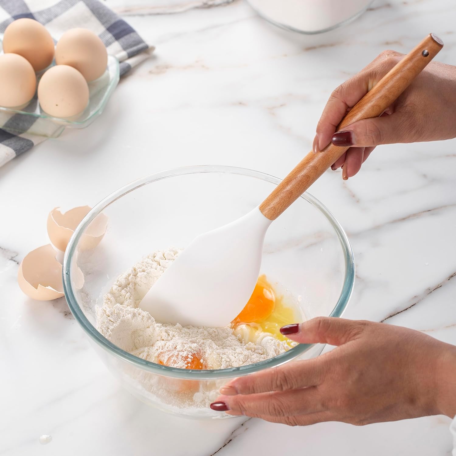 Country Kitchen Non Stick Silicone Utensil Set with Rounded Wood Handles for Cooking and Baking, 14 Piece Set, White