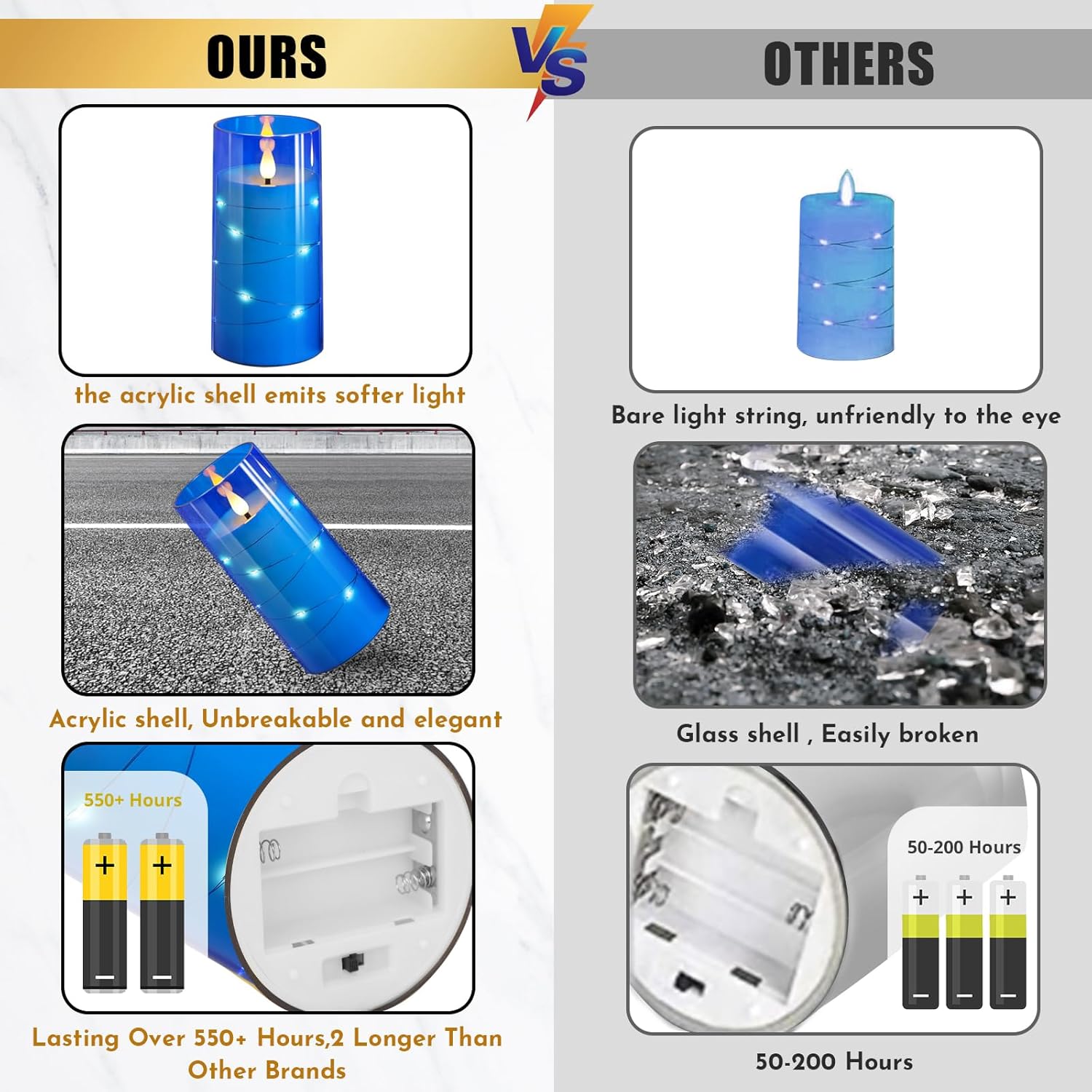 - 3D Wick and Realistic Appearance, Unbreakable Design - Made of premium acrylic, 3D black wick realistic flicker design. Compared with glass radiance candles, premium acrylic shells make the battery candles stronger and long-lasting. Through the clear shell, feels and looks like real wax pillar candle flame