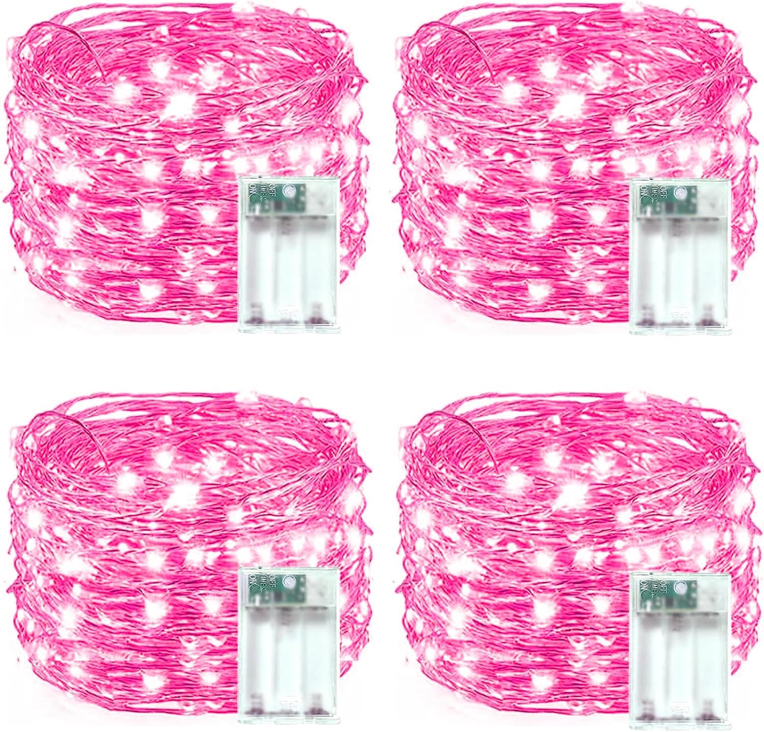 - Ultra-Bright and Durable Battery-Operated Fairy Lights: Each string includes 60 super-bright LEDs, 20 feet of sturdy silver color copper wire, and a battery case with a timer, ensuring longevity and reliability. These pink fairy lights create a soft and charming glow that adds a gentle and romantic touch to any setting. Suitable for indoor and outdoor use, they beautifully enhance curtains, garlands, Christmas trees, bedrooms, centerpieces, fireplaces, porches, patios, gardens, parties, and holiday decorations.