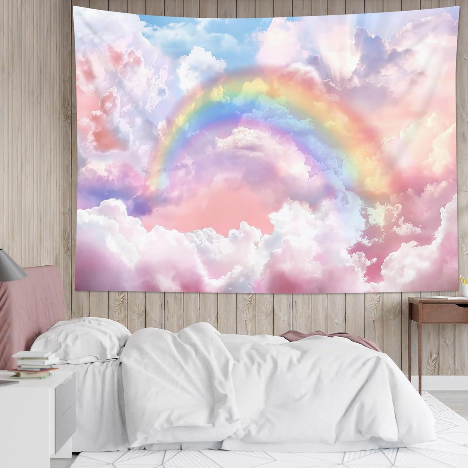 - DESIGN : This Rainbow Cloud tapestry adopt HD digital printing, Don’t worry about fading, vibrant colorful design will light up your room!
