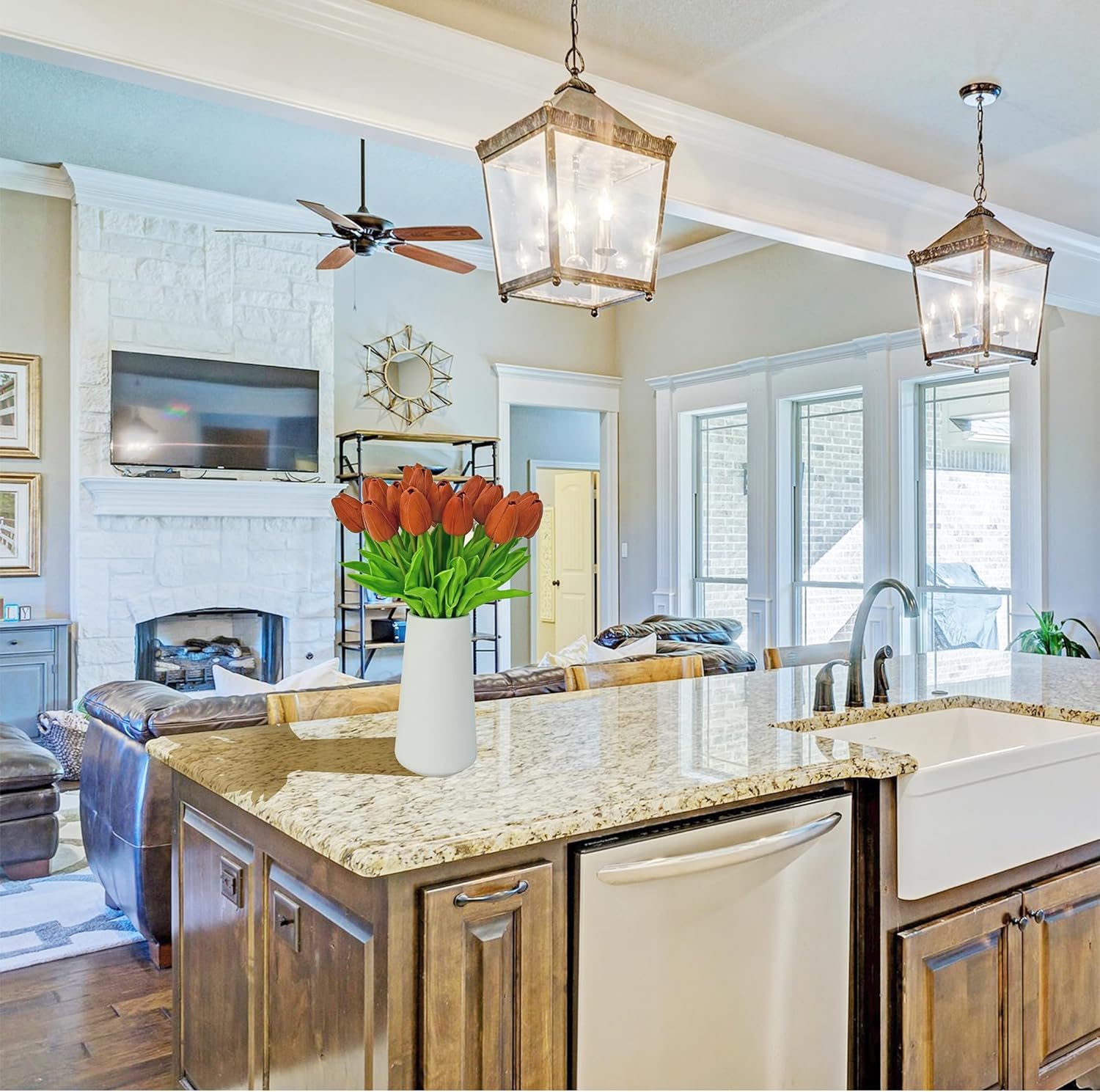 Mandy's Artificial Tulips 20 Stems Burnt Orange PU Faux Flowers for Wedding Home Decor 13.5 Inch