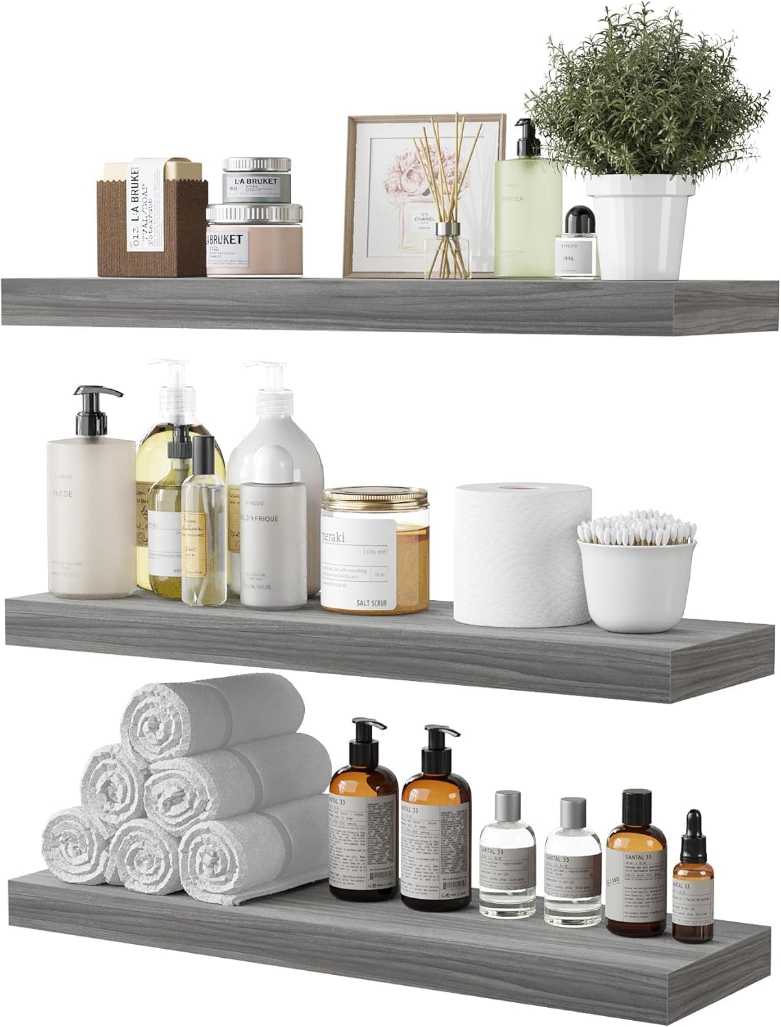 BAMEOS Floating Shelf,Wall Shelf,Decor Wall Mounted Shelves,Hanging Shelf Set of 3,L24xW6 for Bathroom Kitchen Living,Kitchen,Room Bedroom Storage,Walnut