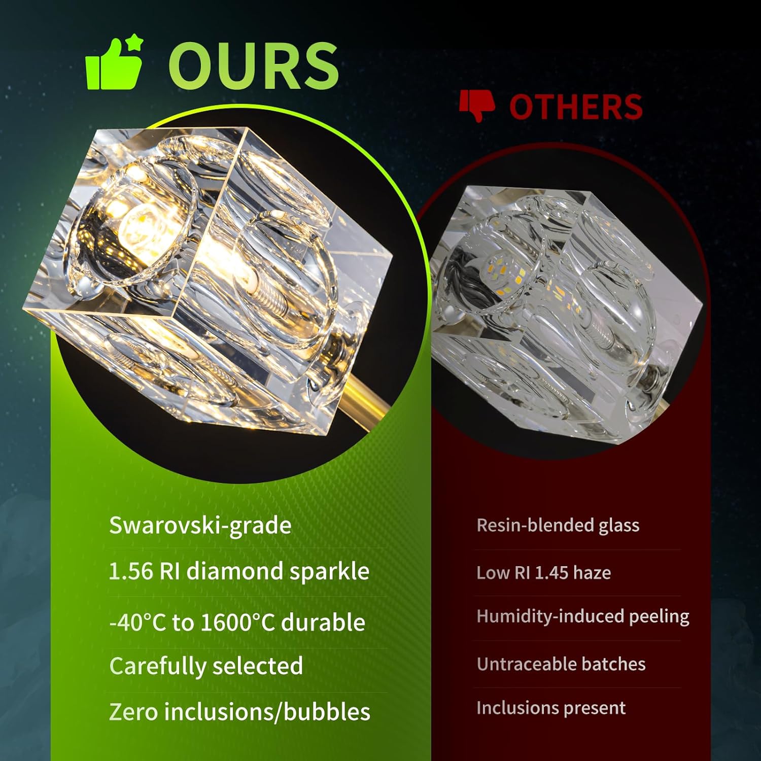 - 【K9 Crystal Material】The 4 lampshades of the ceiling light are made of clear K9 crystal, the lamp body is made of high-quality polished brass, the cube crystal lampshade is matched with G9 bulbs (bulbs are not included), and the crystal chandeliers reflects the bright light effect and projects it to the ceiling, making your home Reveals a low-key and elegant atmosphere