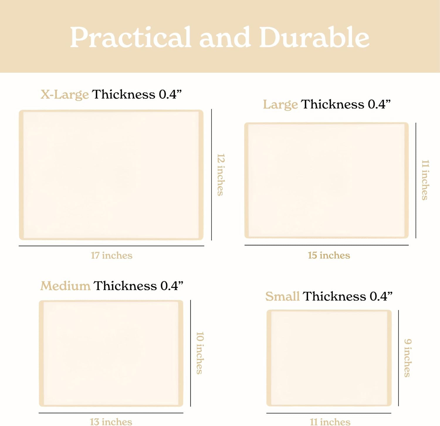 - 4-Pack with Holder: This cutting board set includes small, medium, and large cutting board sizes for every prep need. It also comes with a compact holder that neatly organizes all boards vertically, keeping your countertops clutter-free while ready for any chopping task.