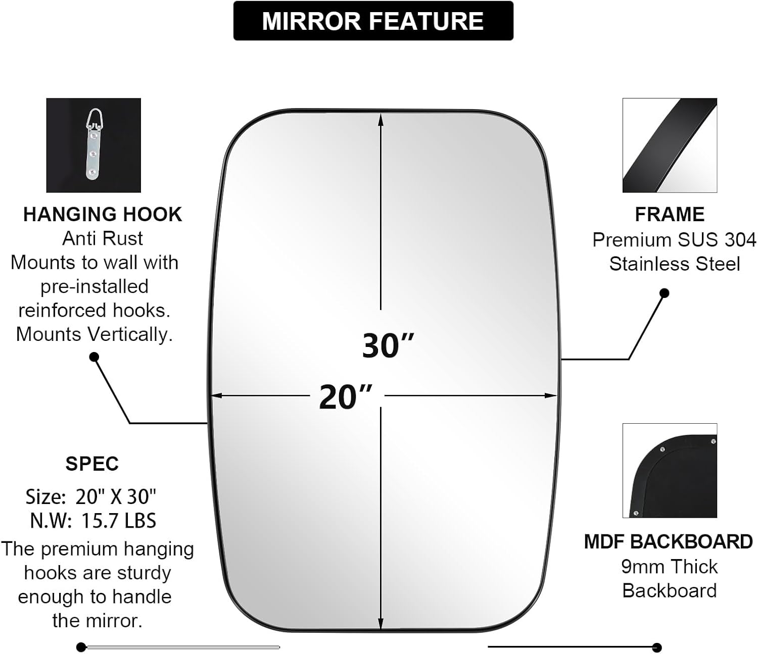 - Maximize Limited Wall Areas: Maximize your bathroom's wall space with the 20 x 30 inch mirror. Its versatile size and clear, distortion-free reflection make it perfect for narrow spaces, offering both practicality and aesthetic appeal in confined areas