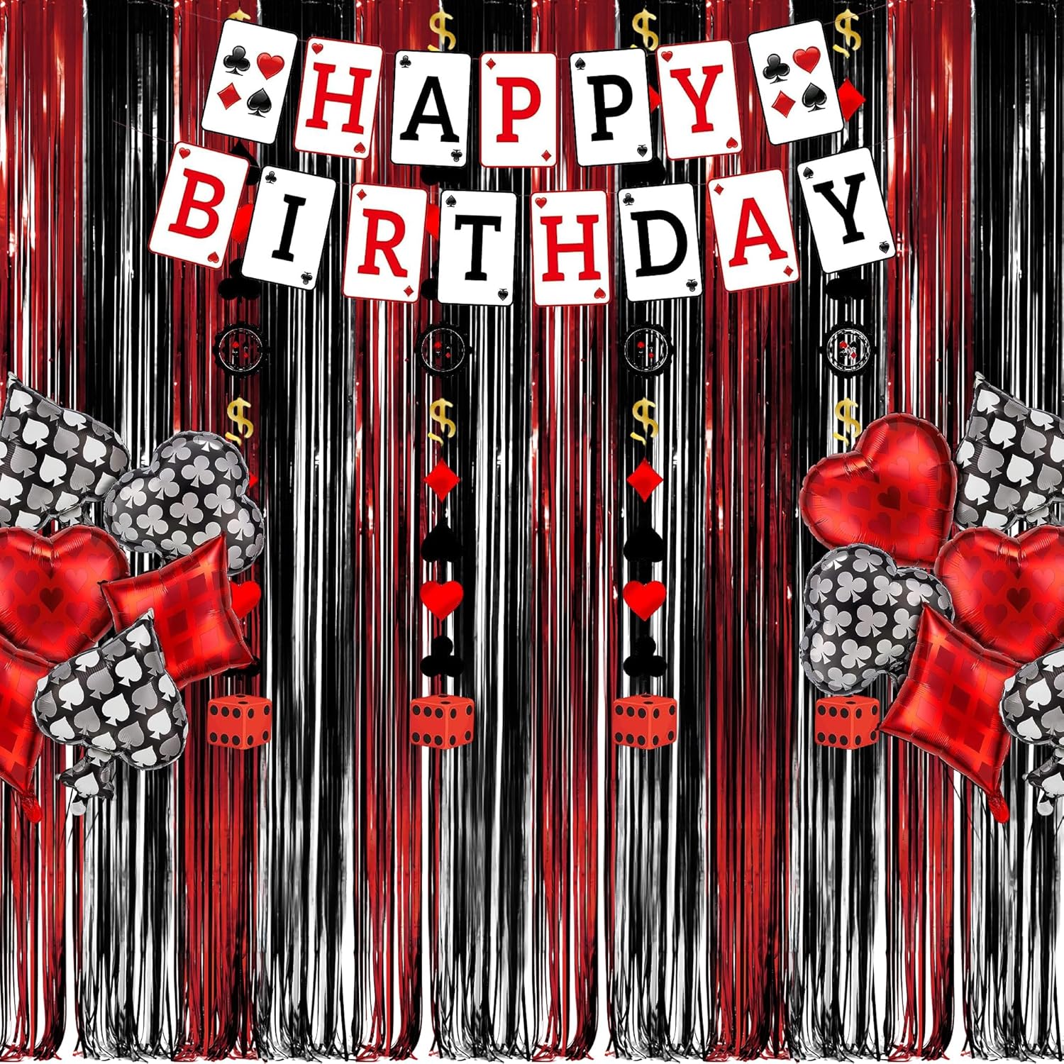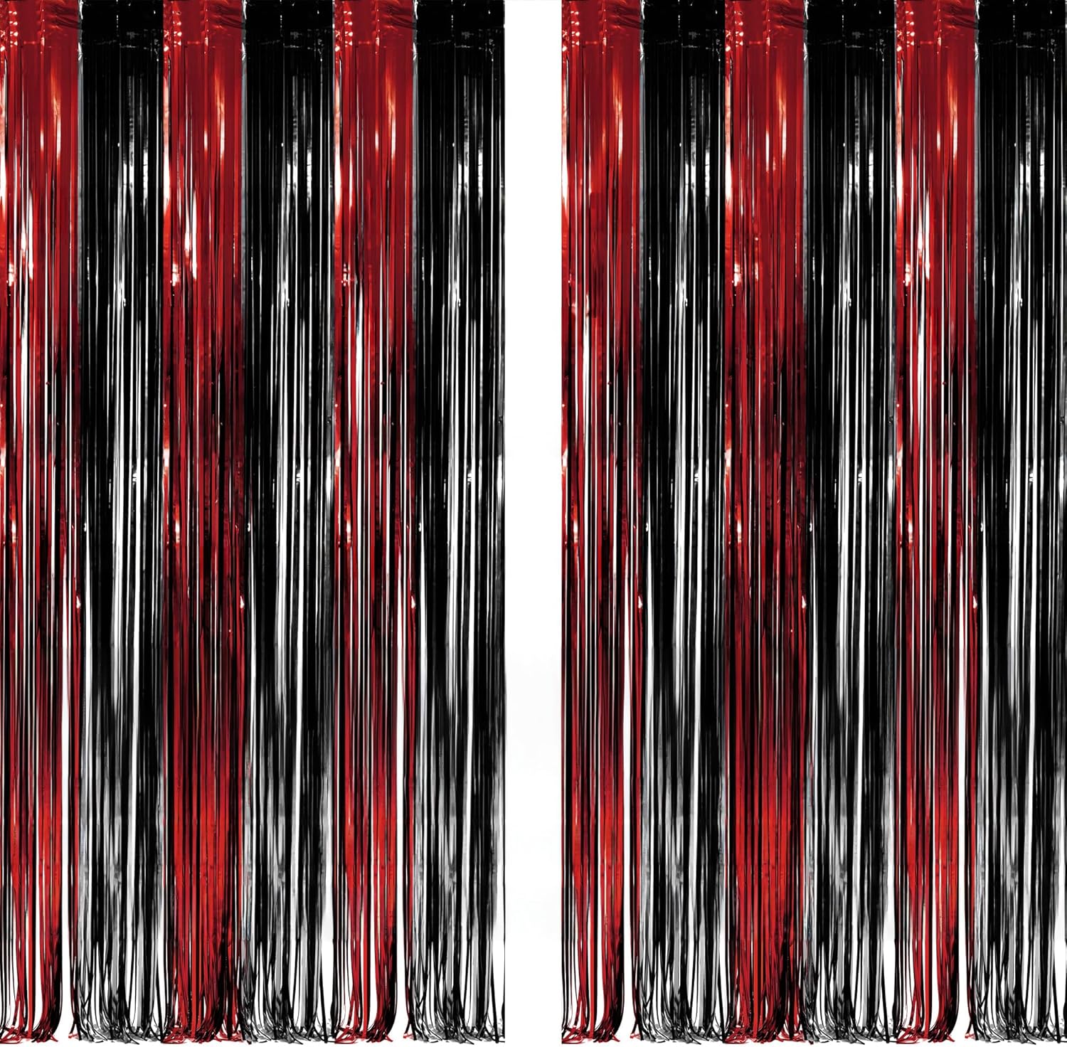 - Infuse an aura of mystery with our Black Red party streamers – a captivating addition that Black and Red themed events, Casino's theme party, and more. These tinsel backdrops in foil fringe curtain style will transport you to the world of Stranger.