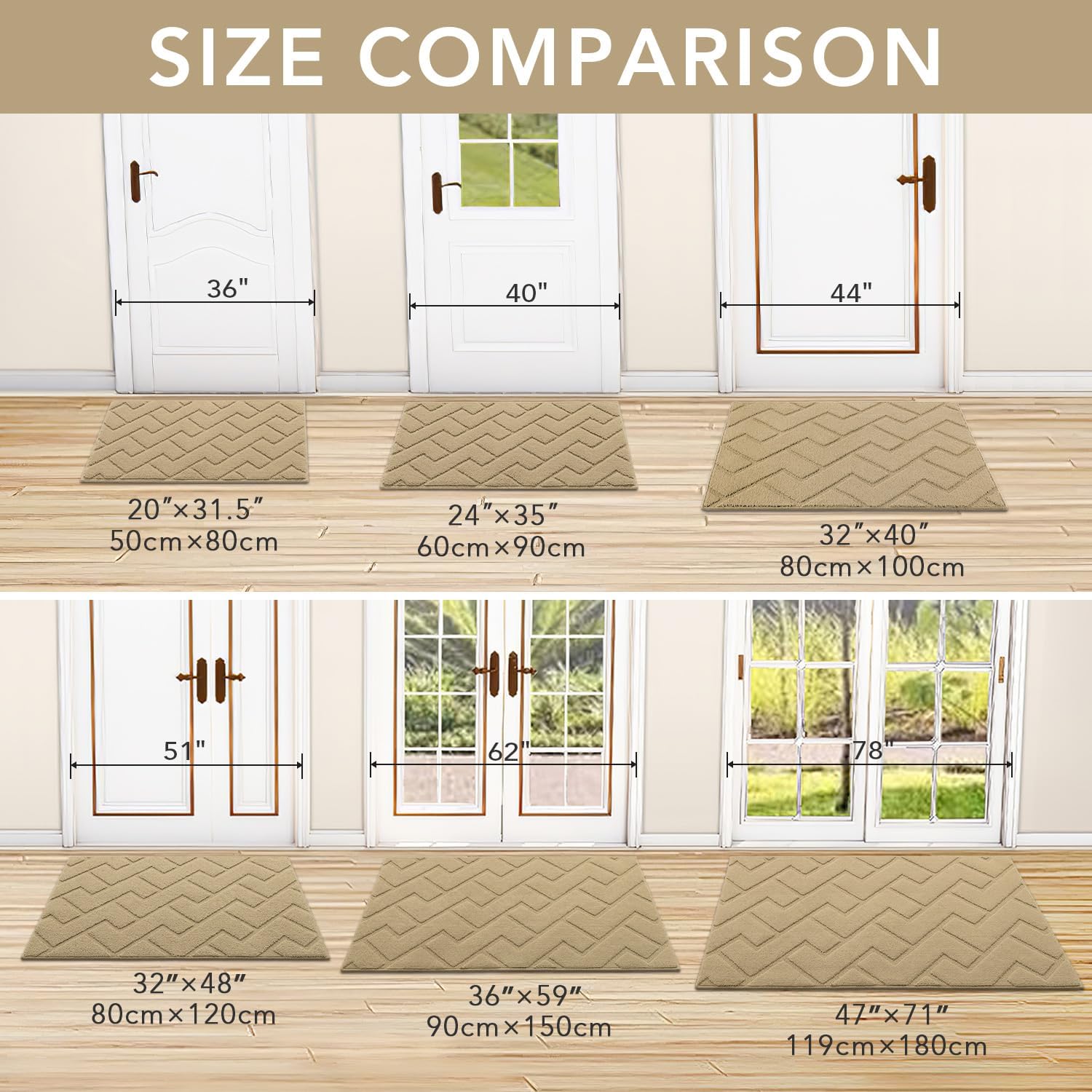 hicorfe Front Door Mat Outside Entrance,36"x59" Absorbent Muddy Dirt Resist Welcome Door Mats Outdoor Indoor,Stain and Fade Resistant,Non Slip Backing Entry Mat Doormat for Entryway(Beige)