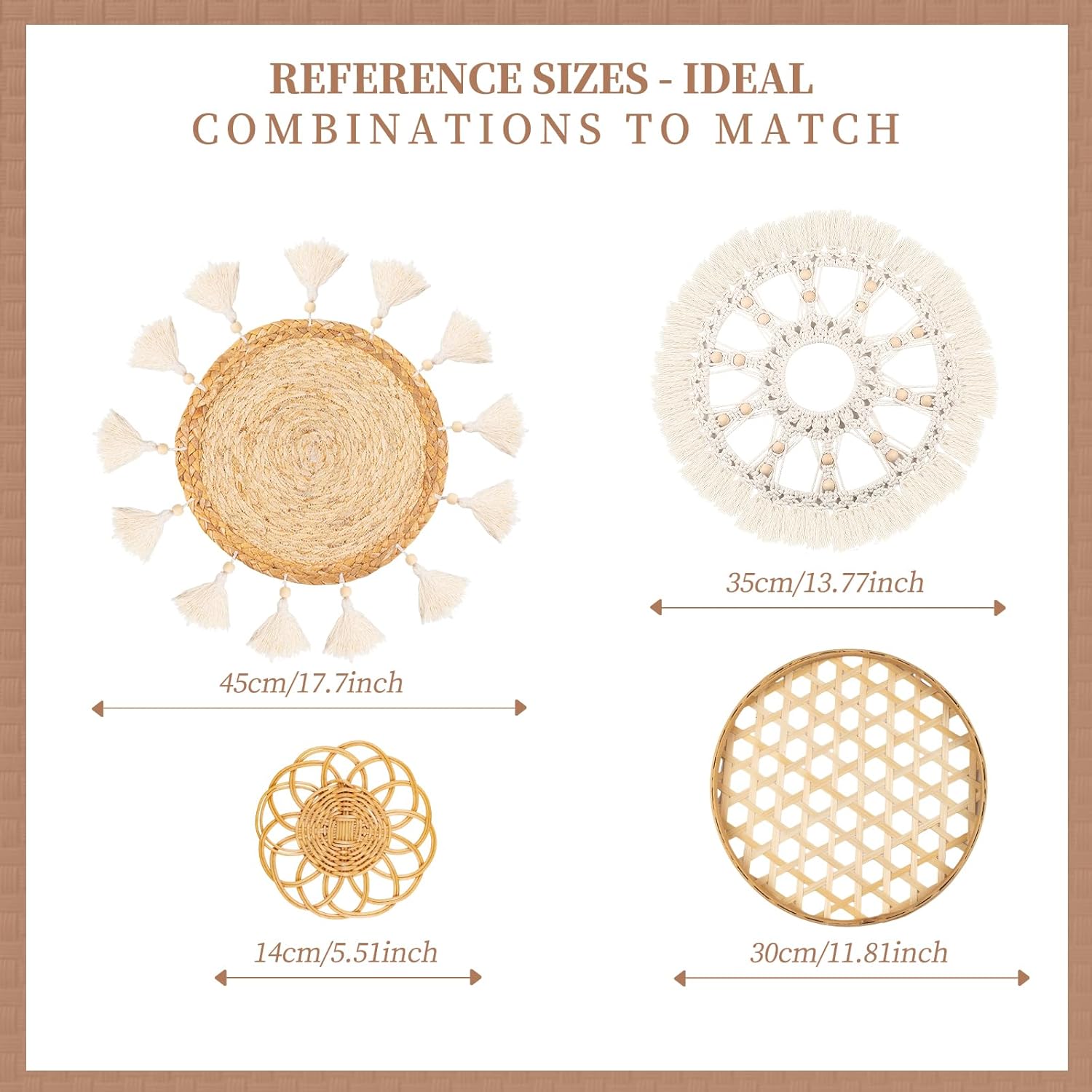 - 【Unique Bohemian Style】: These wall decors feature a unique bohemian style with a flat round woven design, tassels, and elegant macrame details. Add a distinctive touch to any room, creating a cozy and artistic ambiance.