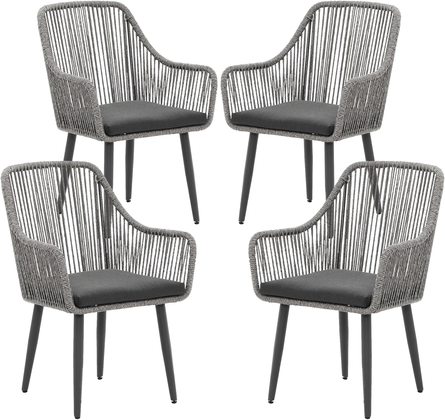 Patiorama Outdoor Dining Chairs, Patio Dining Chair Set of 4, All-Weather Woven Rope Rattan Chairs, Outdoor Dining Wicker Chairs with Armrests for Indoor Balcony Pool Backyard(Gray)