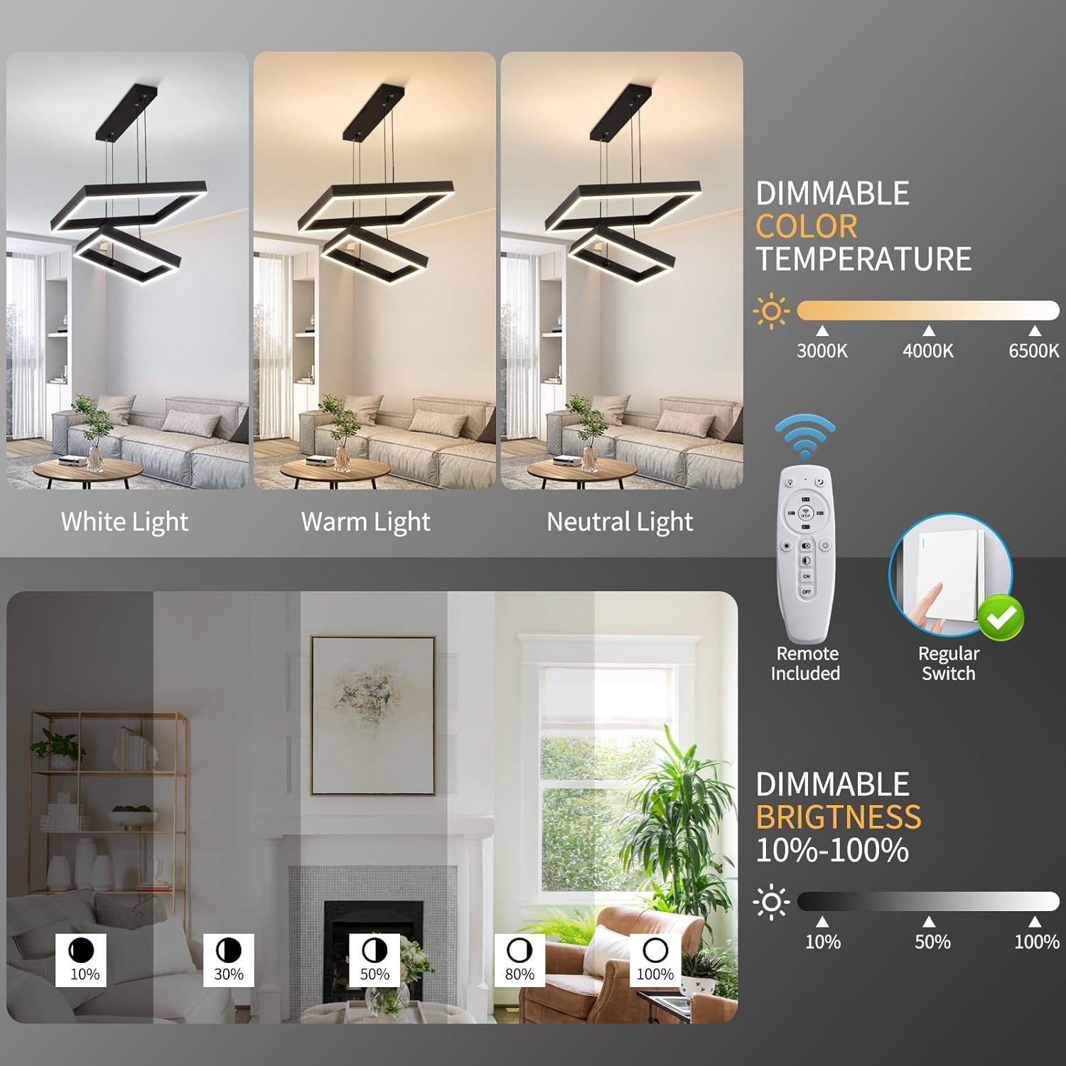 - 【Modern LED Chandelier Adjustable Height】: An Square LED chandelier will be the focal point of any room by serving as a decorative style element that enhances the beauty of fine furnishings. This modern chandeliers led ring chandelier made of high-quality metal + Acrylic, High light transmittance. Efficient LED light source, energy saving, soft light without glare. Pendant Lighting Size : 23.6”+15.7”(60cm+40cm), Maximum Hanging: Height Adjustable From 11.8"(300mm) to 59"(1500mm); Voltage: 110V