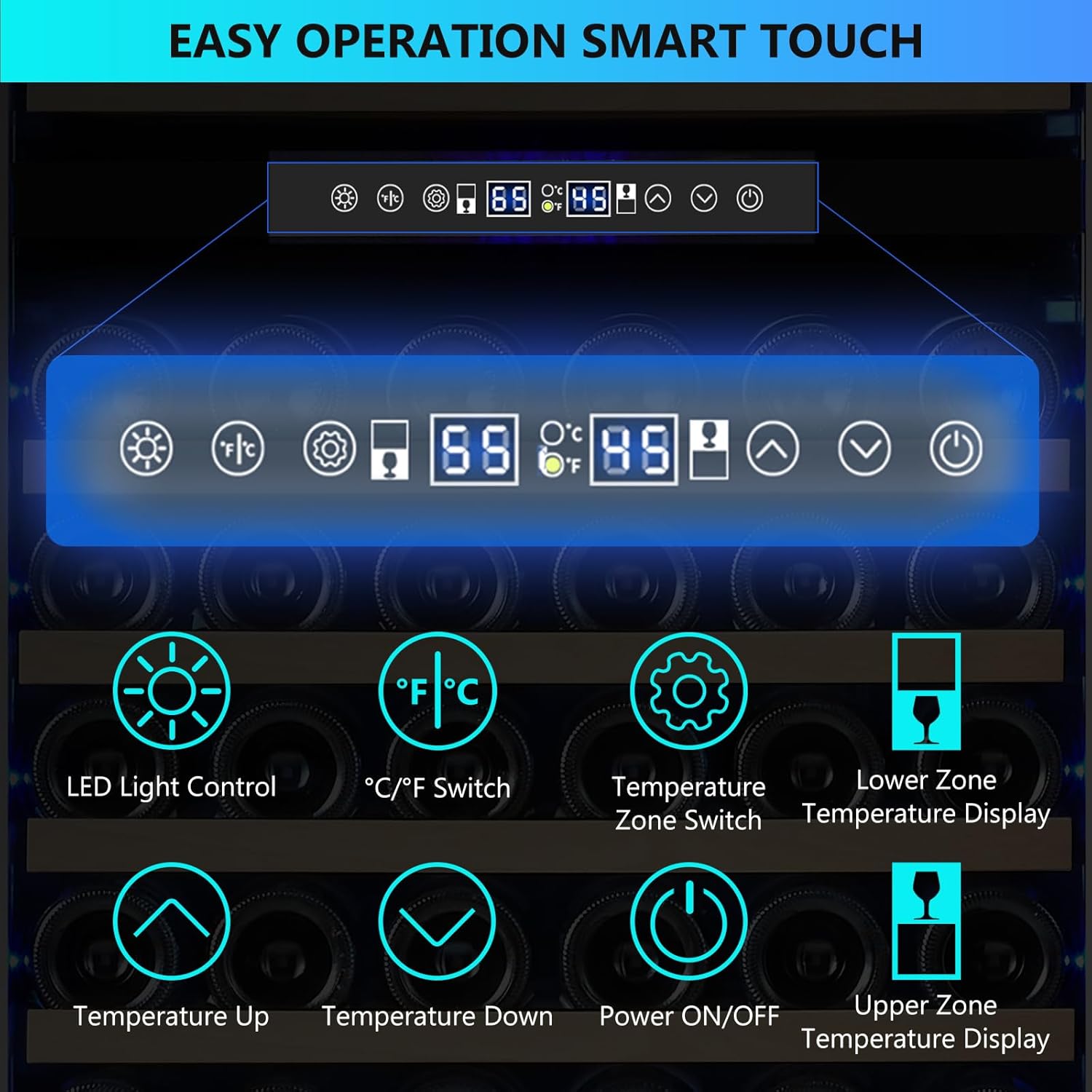 - ăAdvanced Compressor Cooling and Circulation SystemăThe ORYMUSE large dual-zone wine refrigerator employs cutting-edge compressor technology and a robust circulating fan, delivering rapid, powerful, and stable cooling. The internal upper and lower zone air circulation system ensures even distribution, allowing you to store different wines according to specific temperature range needs. Adjustable temperature range for the upper zone: 40-55°F (5-13°C), lower zone: 55-65°F (13-18°C).
