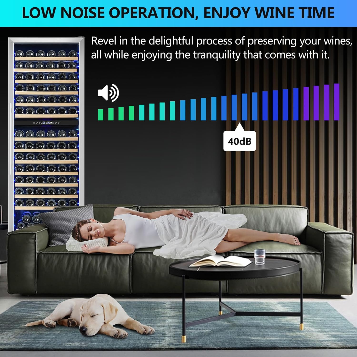 - ăBeechwood Shelf DesignăThe ORYMUSE wine fridge features 14 beechwood shelves, accommodating up to 175 standard Bordeaux (750 ml, thickness ⤠2.75'') Wine bottles. With a spacious bottom design, it accommodates various wine types. Beechwood ensures strong stability, humidity control, and durability, and is environmentally friendly and healthy.