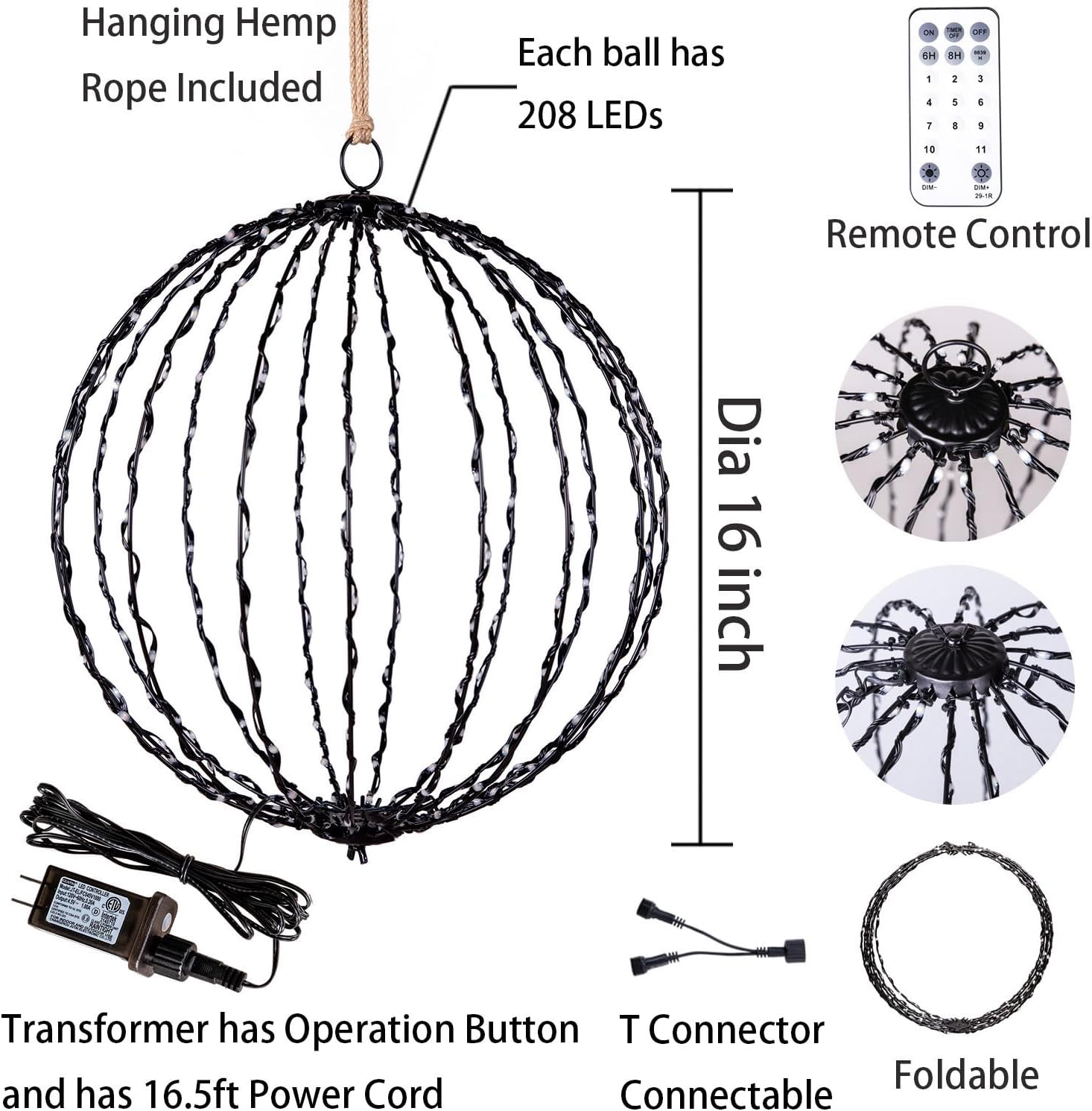 - Large and Foldable Globe: Measuring 16 inches in diameter, these lighted spheres make a bold statement in your outdoor décor. The iron frame construction ensures durability, while the foldable design allows for easy storage and transportation, giving you the flexibility to reuse them for years to come.