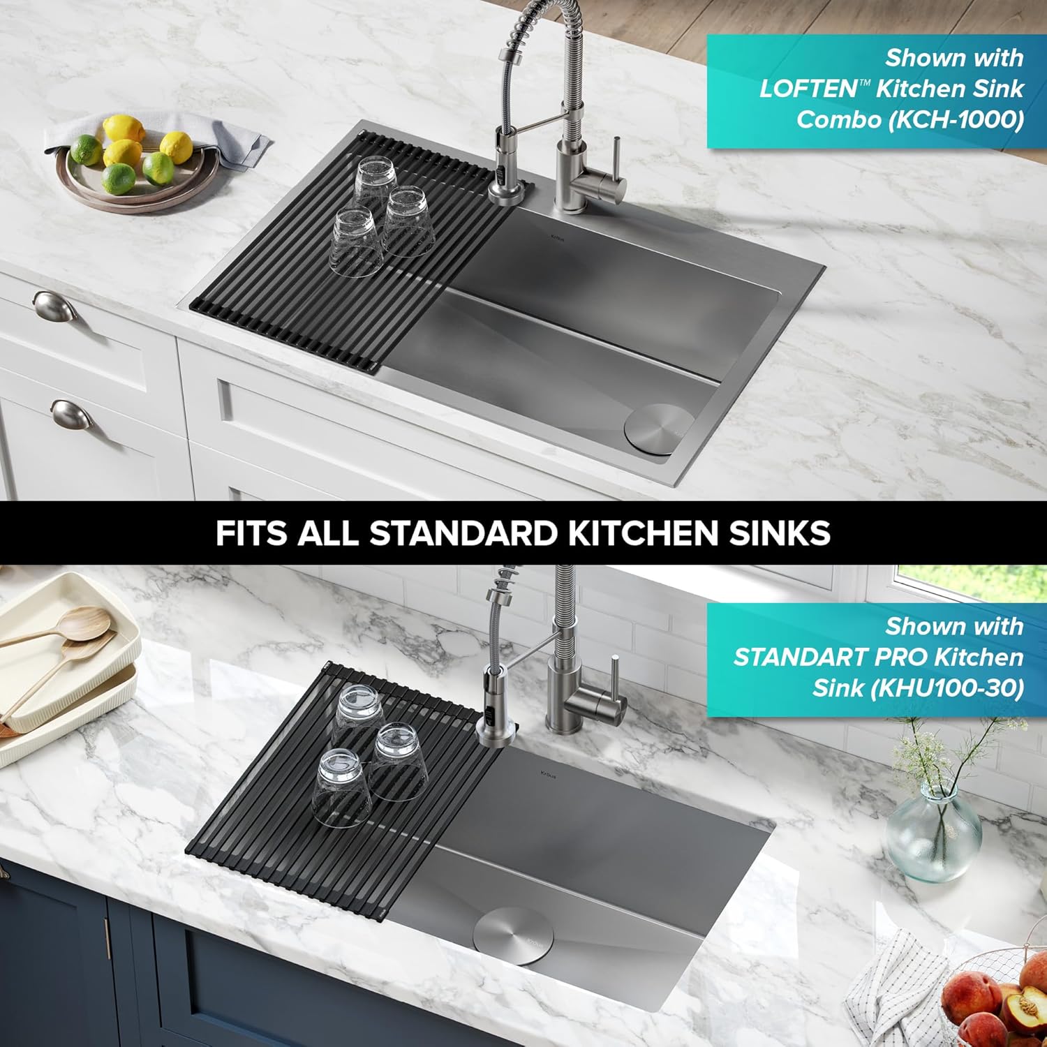 Kraus 20.5 in. Over Sink Roll Up Dish Drying Rack in Jet Black