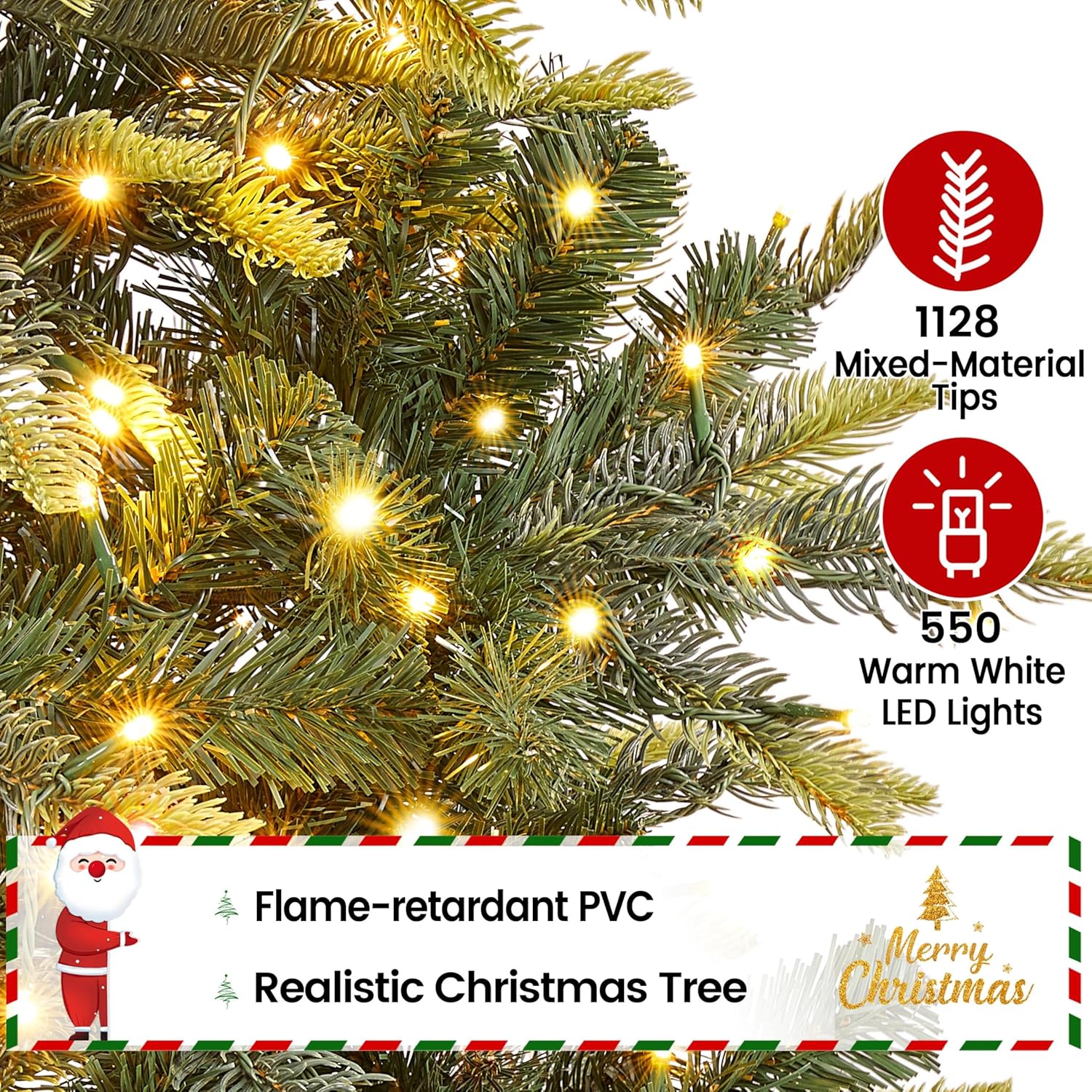Yaheetech 7.5ft Pre-lit Aspen Fir Artificial Christmas Tree with 550 Incandescent Warm Lights Full Prelighted Xmas Tree w/1128 Branch Tips & Foldable Stand for Home Holiday Decor, Green
