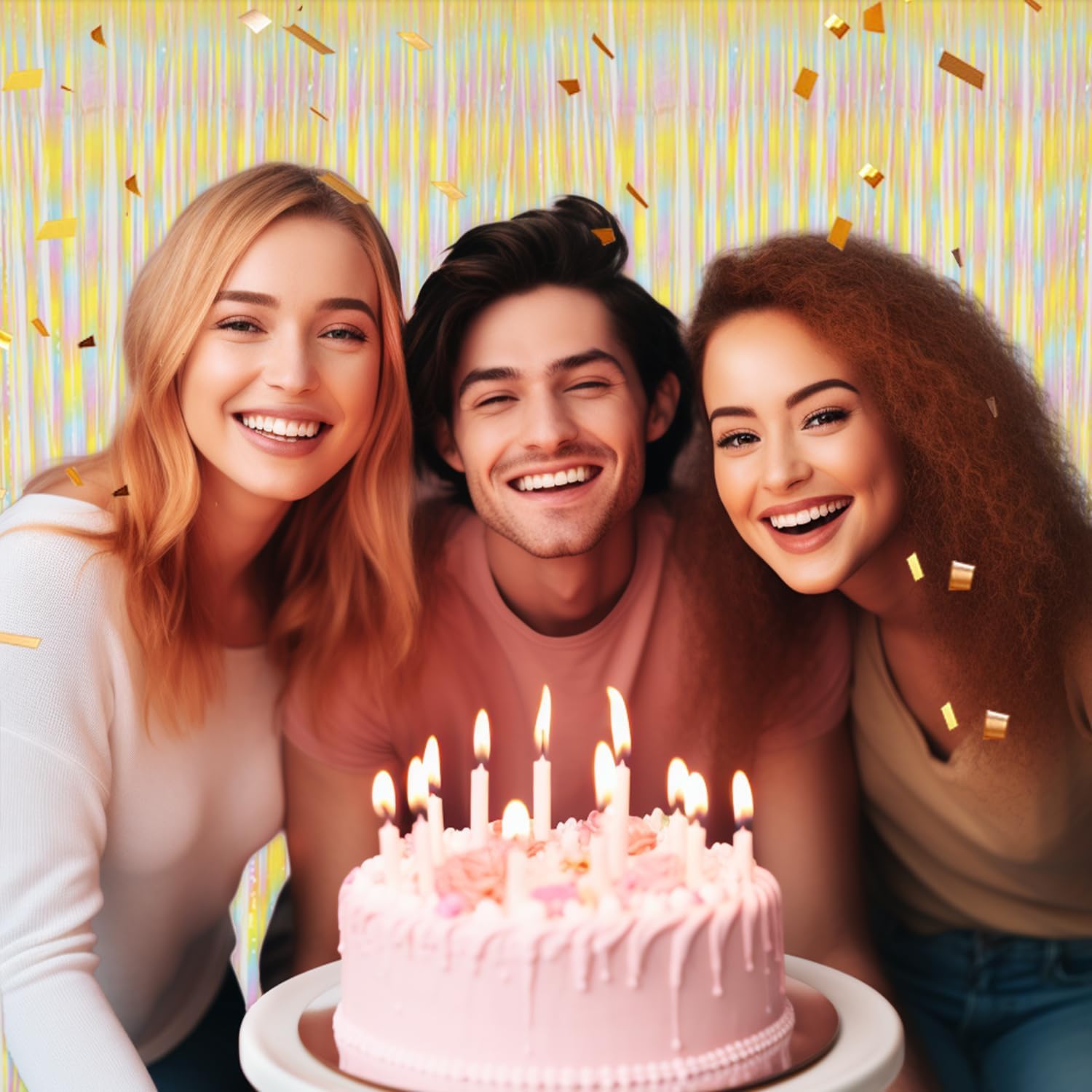 3 Pack Foil Fringe Backdrop - PastelRainbow Shiny Tinsel Curtains for Party Decoration/Photo Booth Props - 3.3x8.2 FT Metallic Foil Backdrop for Birthday, Wedding, Graduation, Christmas.