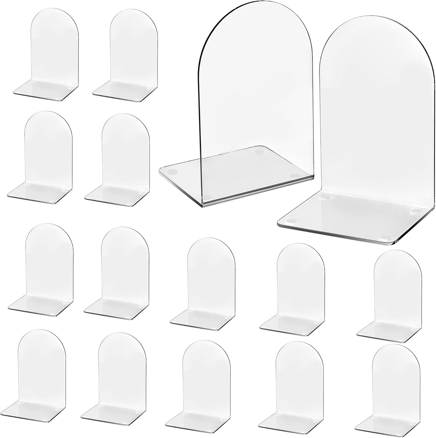 Lulonpon 16 Pieces Book Ends, Bookends, Books End for Shelves, Books End for Heavy Books, Clear Bookends, Acrylic Book Ends for School, Library,Desktop Organizer and Book Shelves