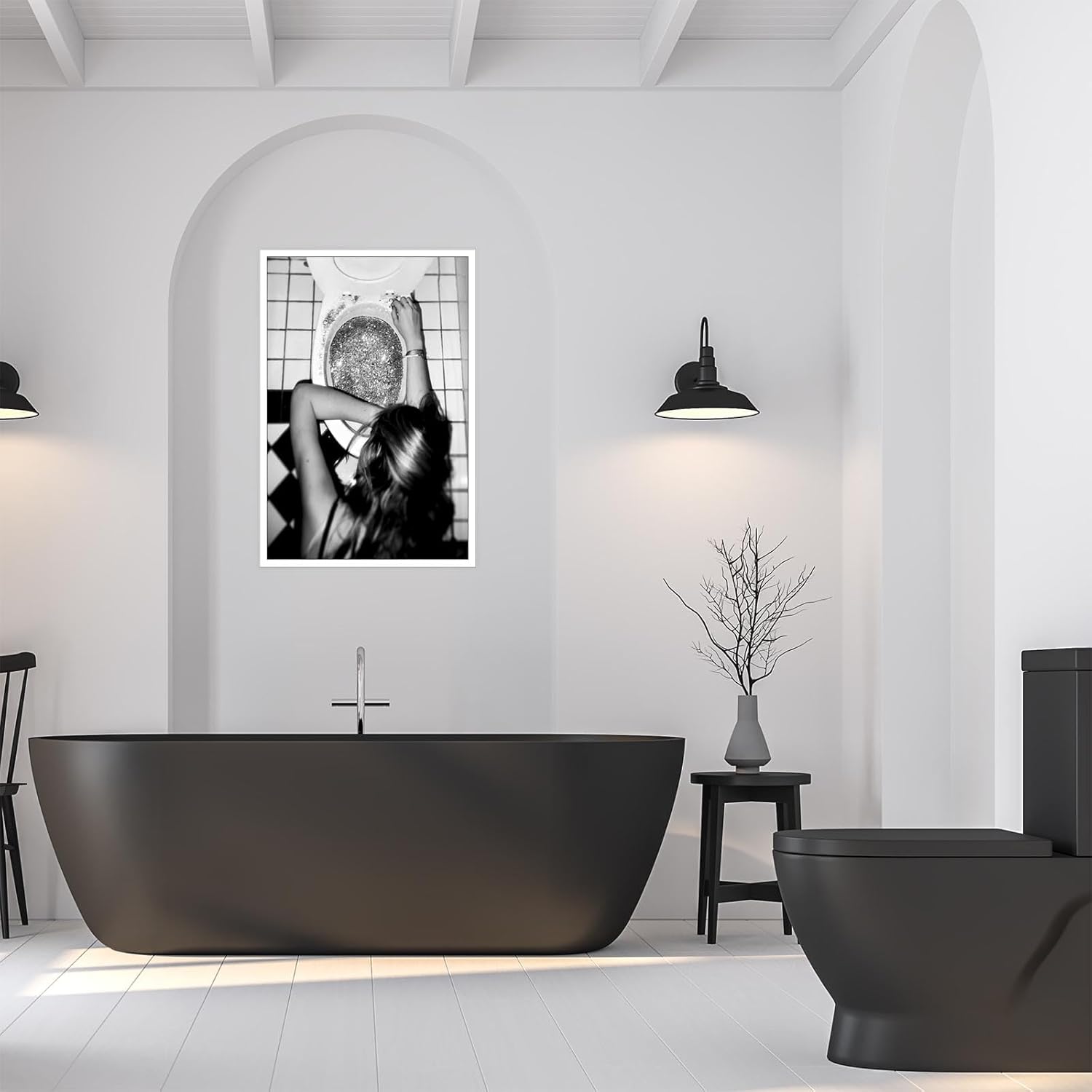 Liyark Funny Bathroom Wall Art Black and White posters Bar Disco Party prints painting Girls Bathroom Canvas wall art Funky aesthetics Teen Girl Bedroom wall decor for 12x16in Unframed
