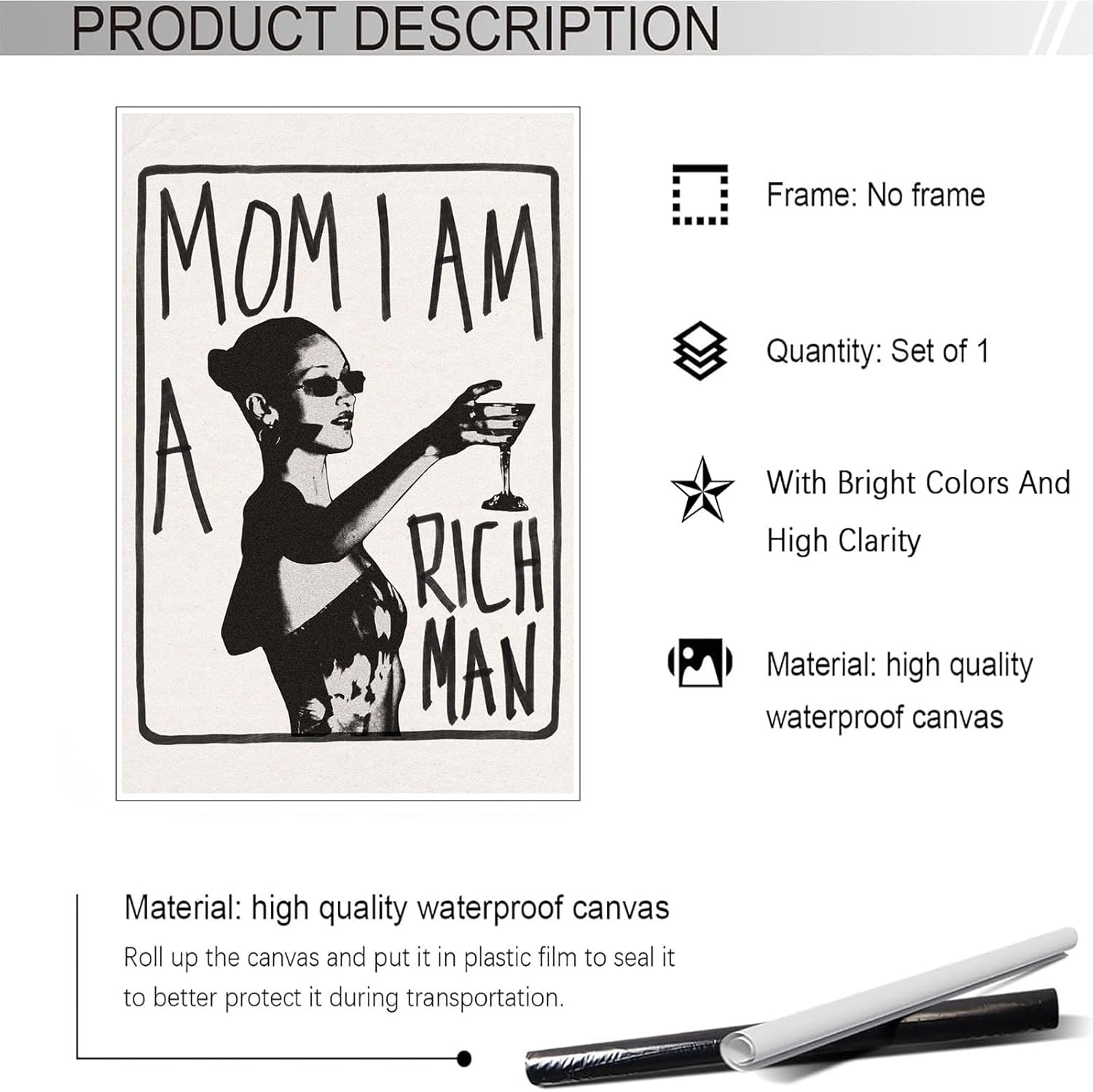 Liyark Mom I Am A Rich Man Aesthetic Retro Music Goblet Poster Feminist canvas Wall Art Vintage Bar Cart Wall Decor Preppy Dorm Decor Unique Wall Art prints painting 16x24in Unframed