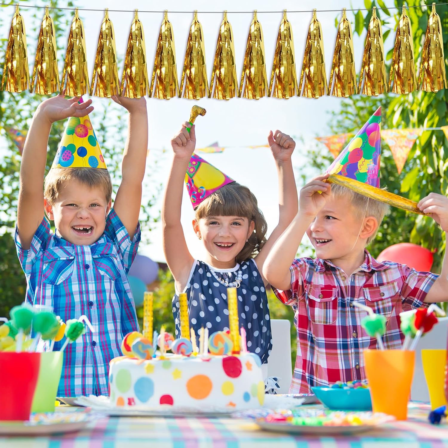 - 【Gold Party Supplies Set】: The total length of the gold birthday tassels banner is 29.5 feet 45tassels, divided into 3 strips, each 9.8 feet long. Each banner contains 15 tassels, and each tassel measures 14 inches, for birthday decorations many occasions, and so on