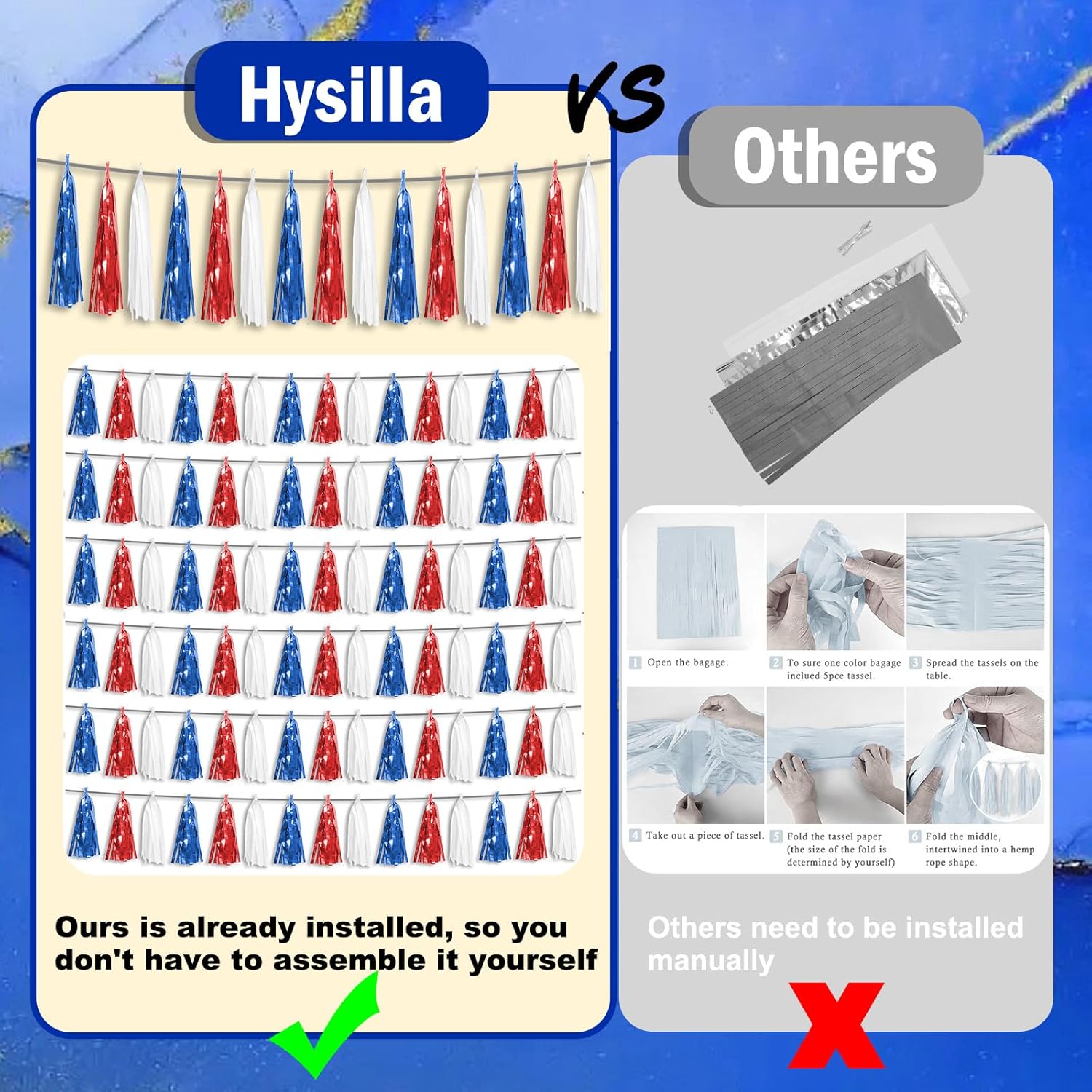 - 【Red Blue White Party Supplies Set】: The total length of the Red Bule White birthday tassels banner is 29.5 feet 45tassels, divided into 3 strips, each 9.8 feet long. Each banner contains 15 tassels, and each tassel measures 14 inches, for birthday decorations many occasions, and so on