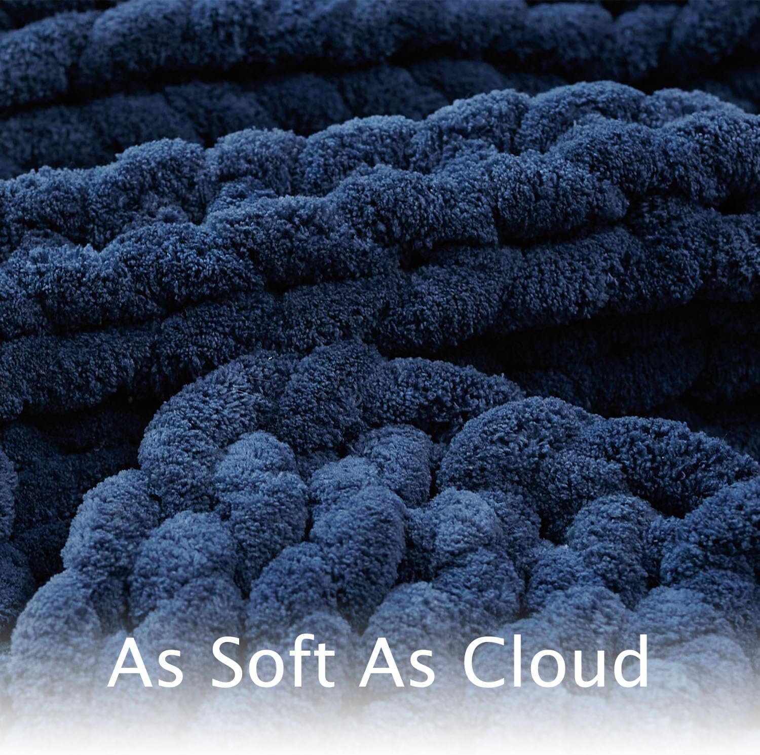 Esterra Chunky Knit Throw Blanket Newly Upgraded Heavy Tighter Version, Handmade Chenille Throw Super Soft, Thick Yarn Cable Knit Crochet Throw Blanket for Couch Bed Sofa, 50"x60", Navy Blue