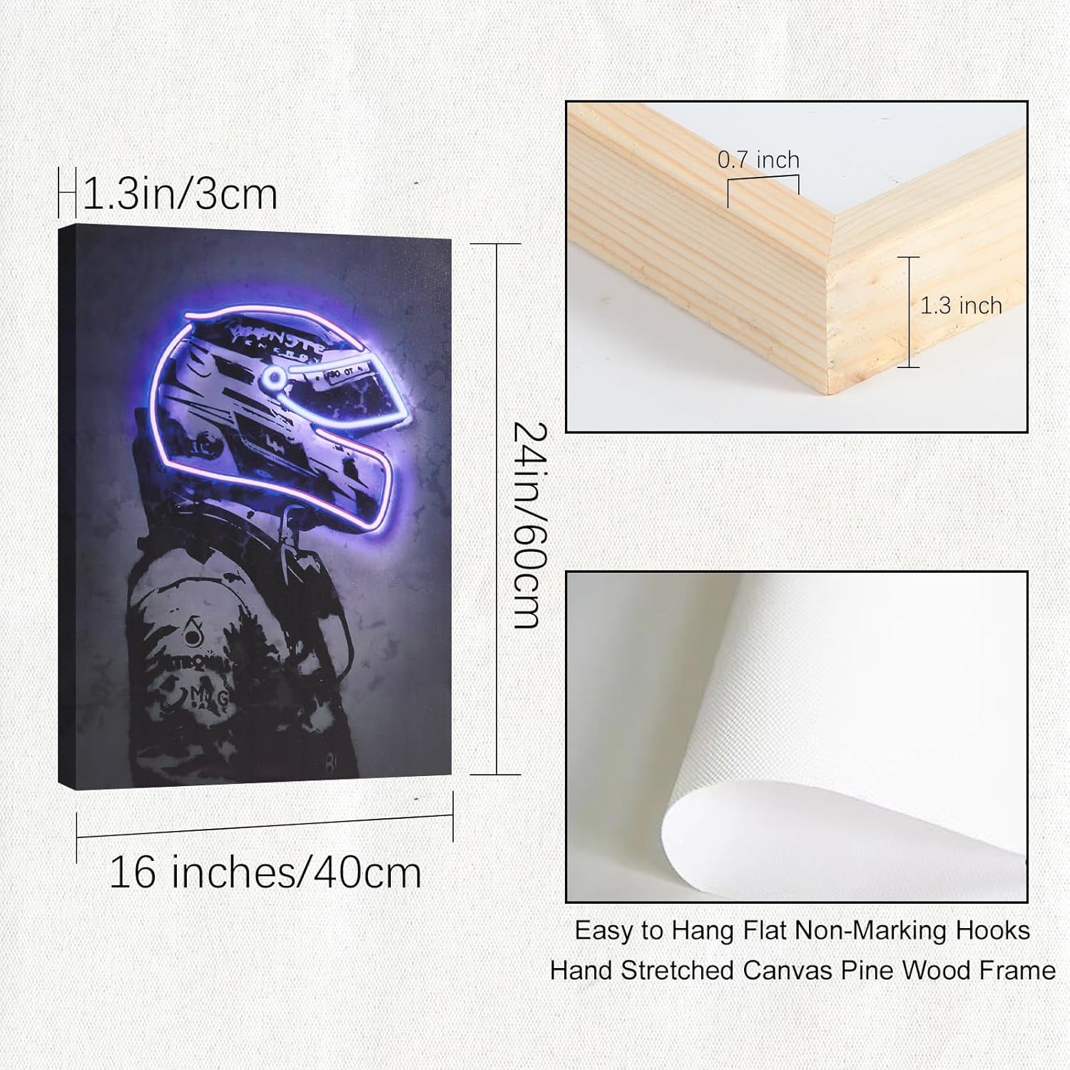 - NEON POSTER WALL PRINT: Racer print measures 16x24 inches (40x60 cm) and is hand stretched on a pine frame. Perfect for decorating sports rooms, gyms and game rooms.