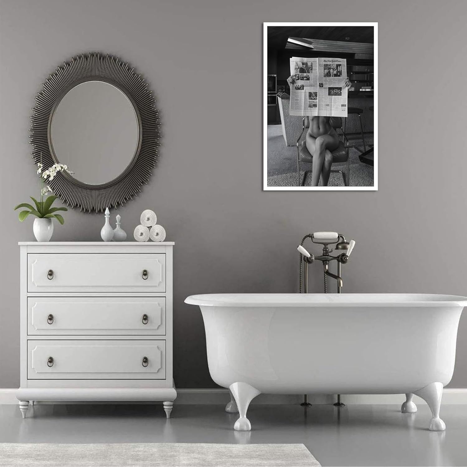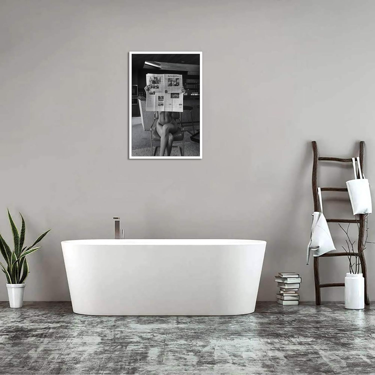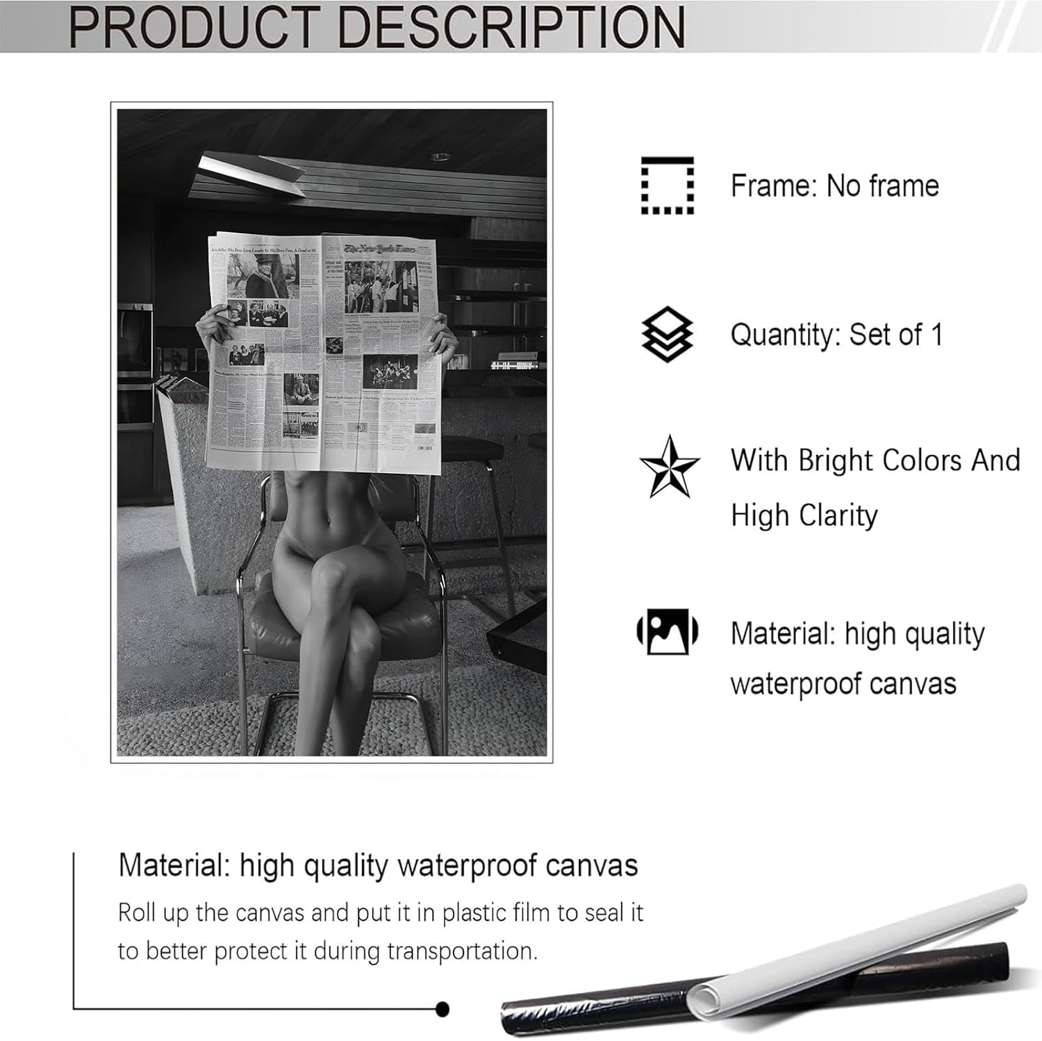 Liyark Sexy Glamorous Reader Poster Feminist Art Black and White Preppy Canvas wall art Retro Room Aesthetic Newspaper prints painting Trendy Naked Women Art wall decor 24x36in Unframed