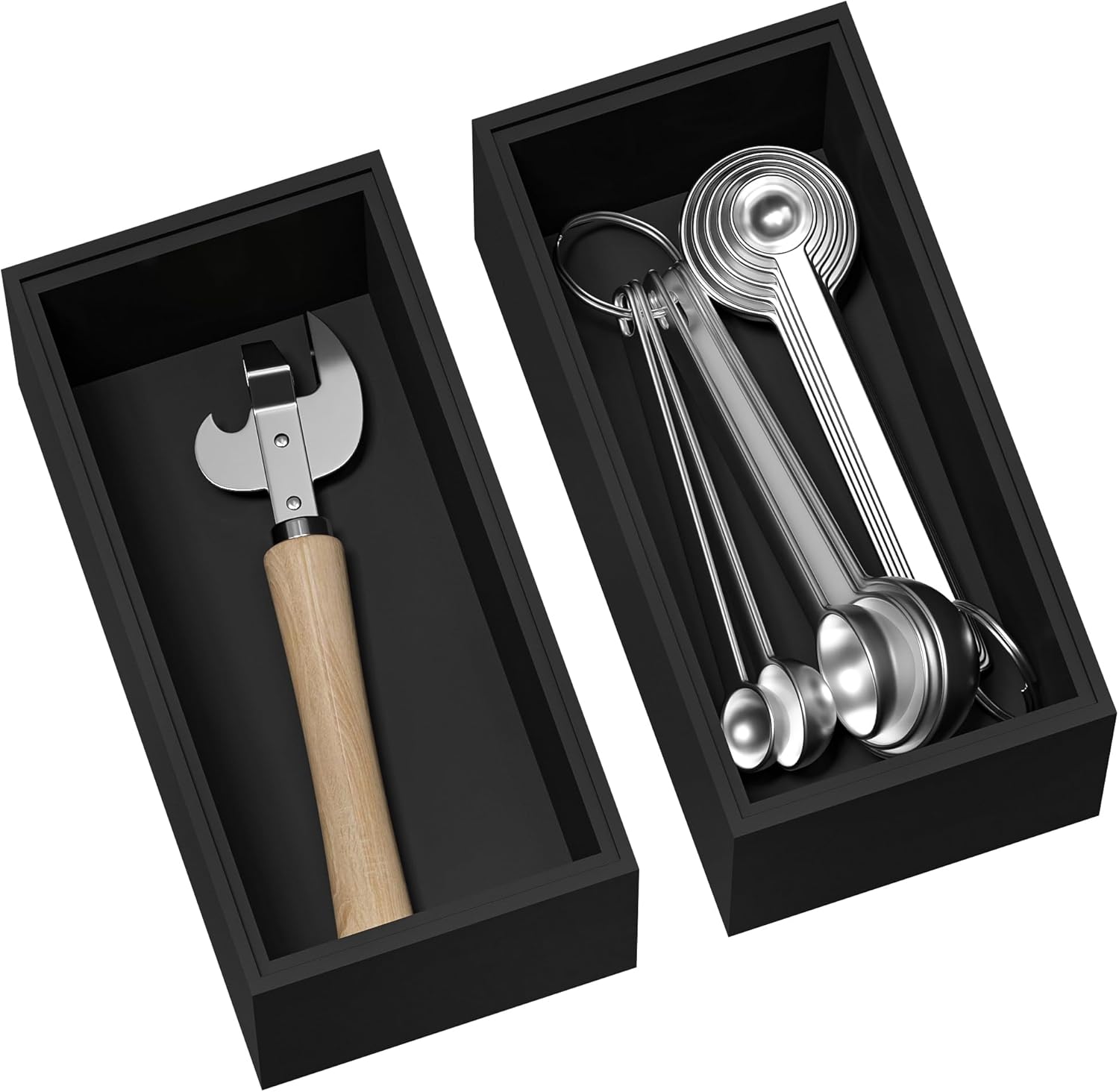 Kitchen Drawer Organizer Bins, Black Bamboo Drawer Organizer Stackable for Silverware, Utensils, Cutlery, Flatware, for Junk Drawer, Dresser, Bathroom, 6" x 3" x 2.5" (Set of 2)