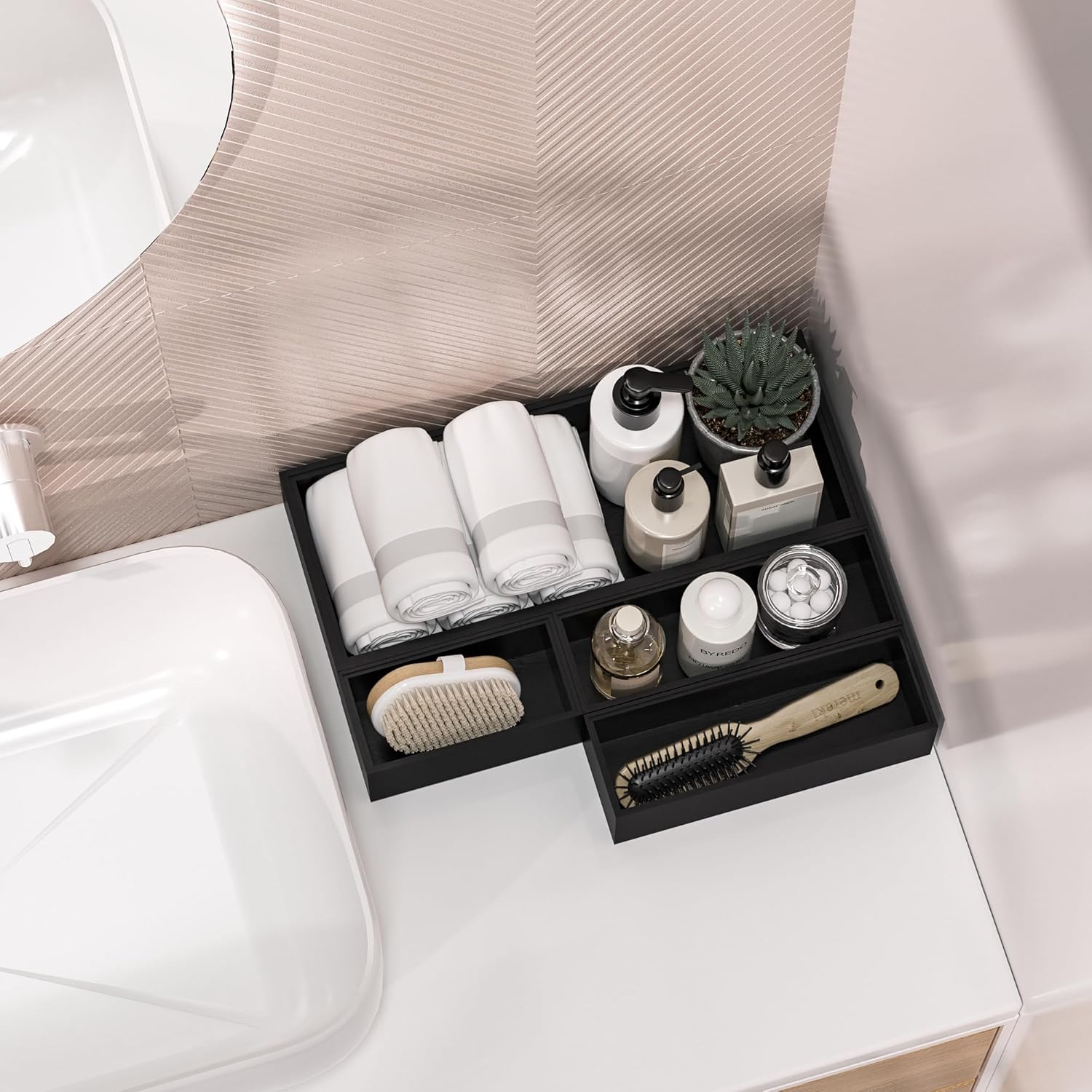 - Multi-functional Drawer Organizer Tray - Say goodbye to having multiple messy junk drawers and always having to dig deep for any needed items. Used in kitchen to organize spoons, spatulas, whisks, wine stoppers, bottle openers, bag clips, spices, baking utensils and other kitchen gadgets; used as bathroom vanity tray to keep perfume, candle, jewelry, trinket, watch, key neatly; or used as desk organizers to accommodate your desk supplies, like your pens, business cards, post-its, paper clips etc. It will make a great addition in your home or office