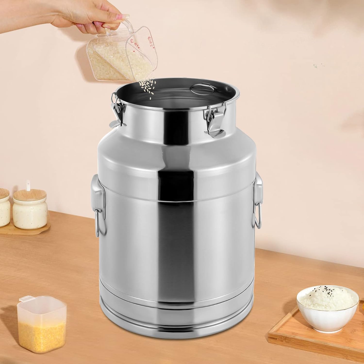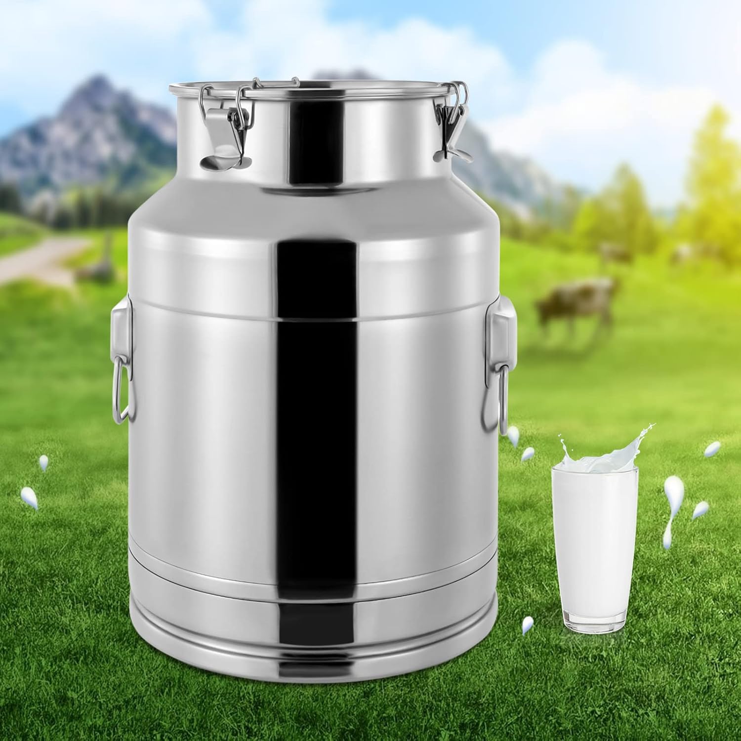 - STAINLESS STEEL MILK CAN - This milk can with a lid is made of 304 stainless steel, which can effectively prevent rust and corrosion, and the surface is polished, which is smooth and comfortable to the touch, not prone to scratches and dents, and has a beautiful appearance.