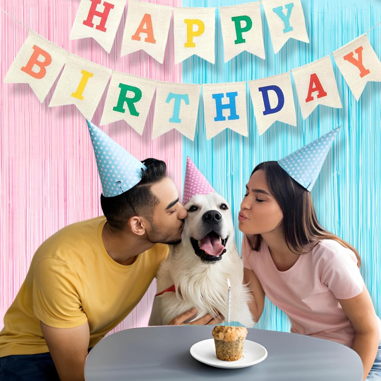 BRAVESHINE Tinsel Photo Backdrop Curtains - 2 Pack 3.2x8.2ft Pastel Pink Blue Foil Fringe Streamer Curtain for Boy or Girl Birthdays Sweet Donuts Easter Party Decorations