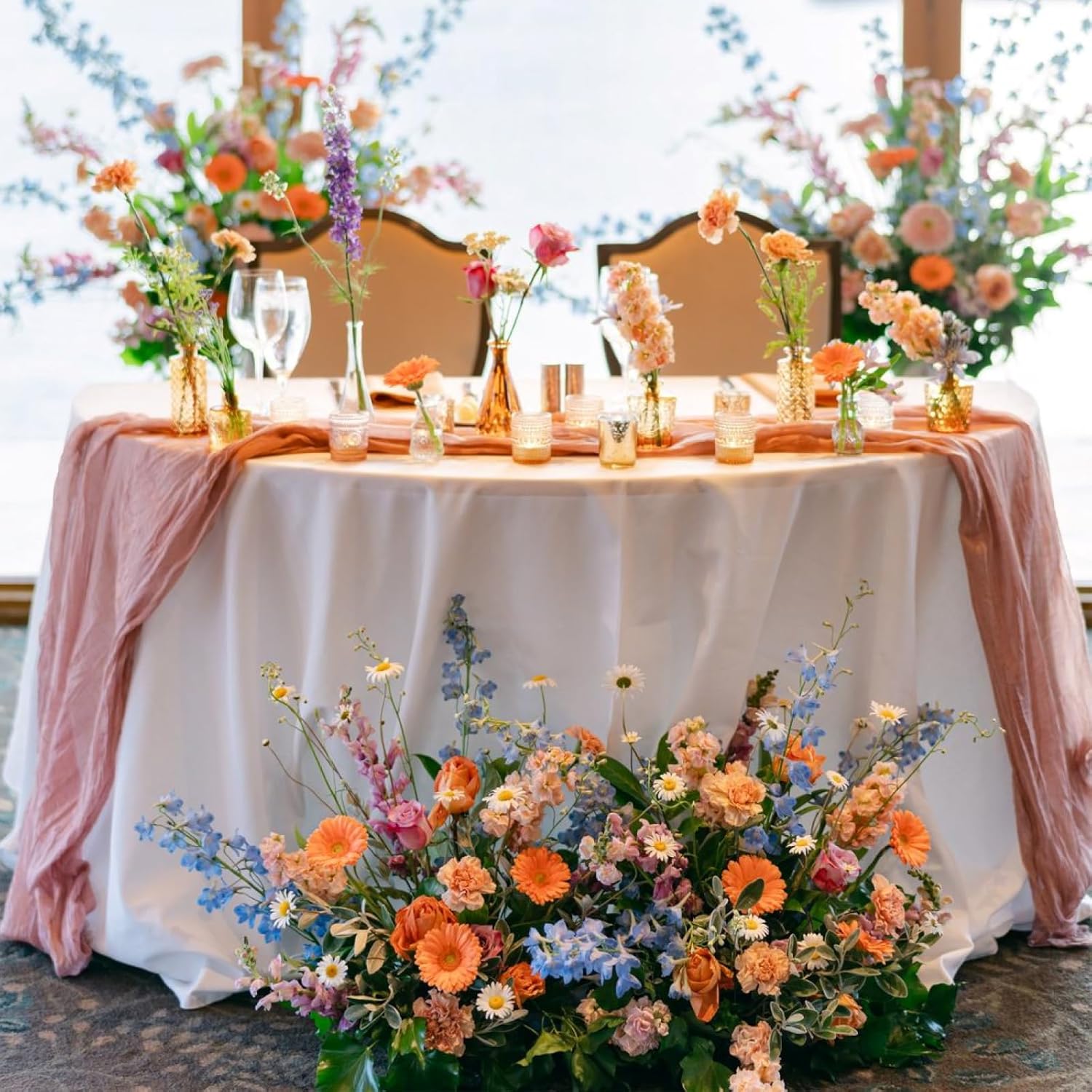 Sioloc 10 Pack Peach Coral Cheesecloth Table Runner Fall Autumn Decor for Home 10ft Table Cloth for Tea Wedding Birthday Party Baby Bridal Shower Halloween Thanksgiving