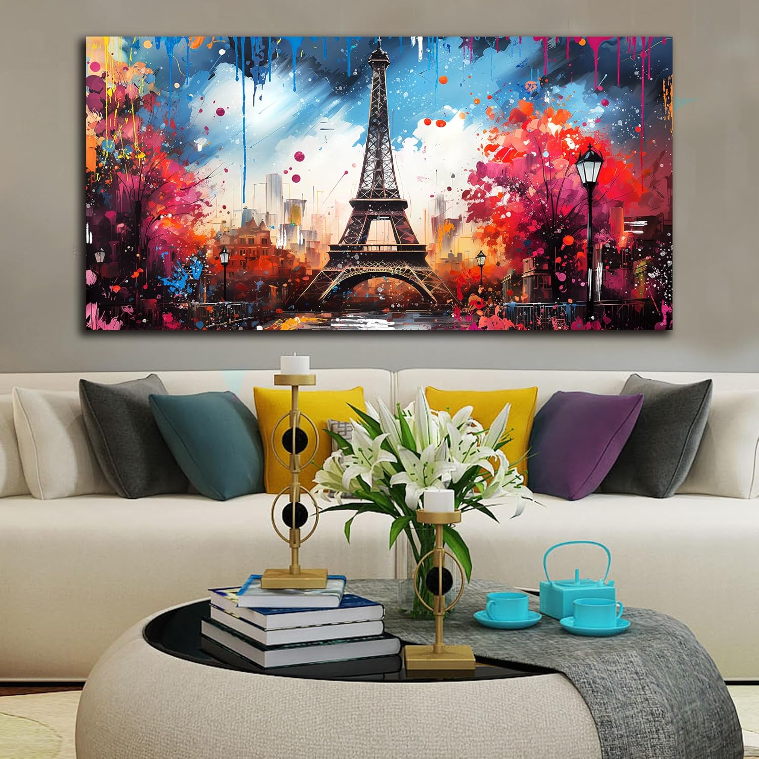 Large Canvas Wall Art Paris Eiffel Tower Decor Modern Graffiti Canvas Prints Ready to Hang for Living Room Bedroom Framed Home Decor Size 30x60