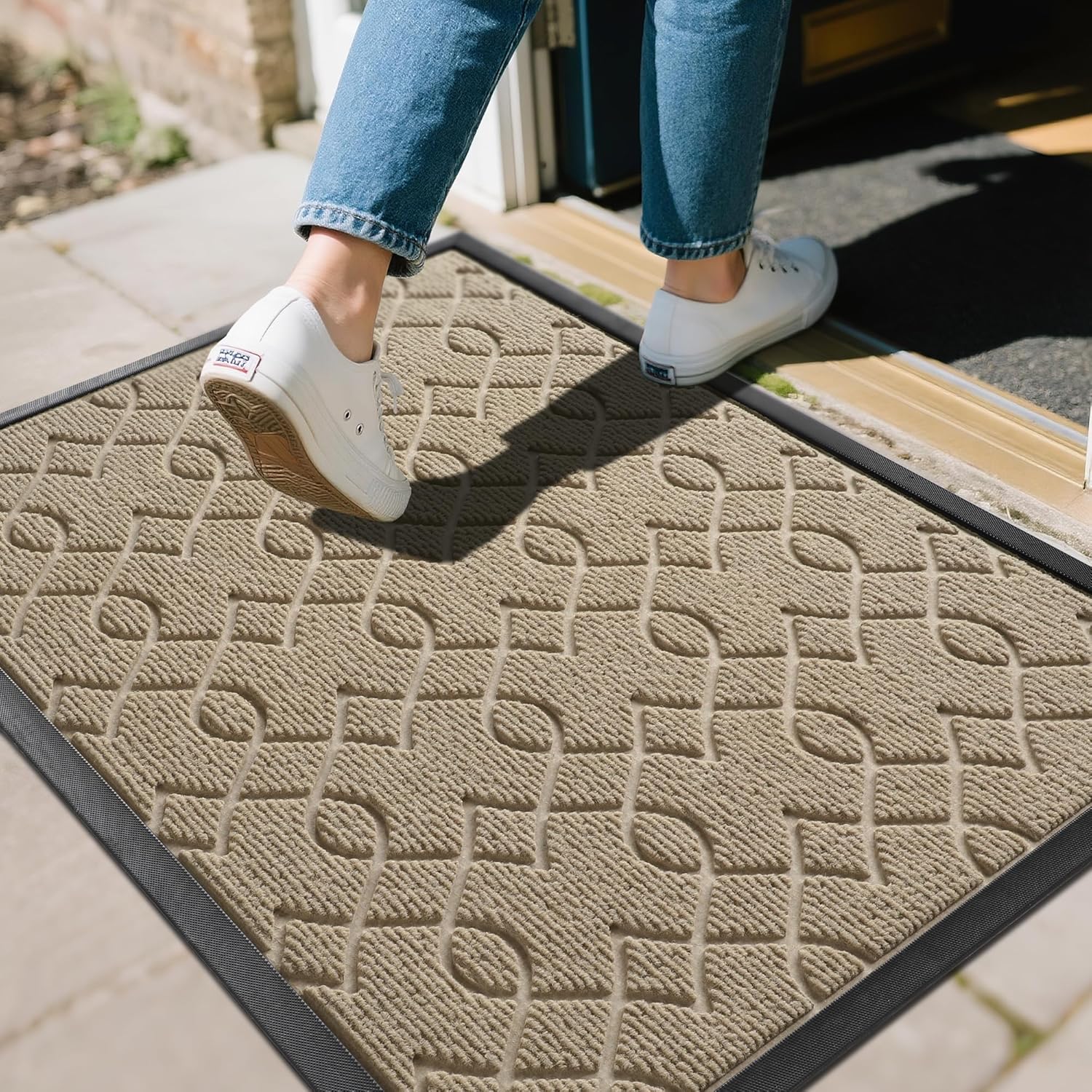 Yimobra Front Door Mat Outdoor Indoor 29.5x17, All-Season, All-Weather, Heavy Duty Welcome Door Mats Outside Entrance, Non Slip Porch Patio Entrance Mat, Light Beige