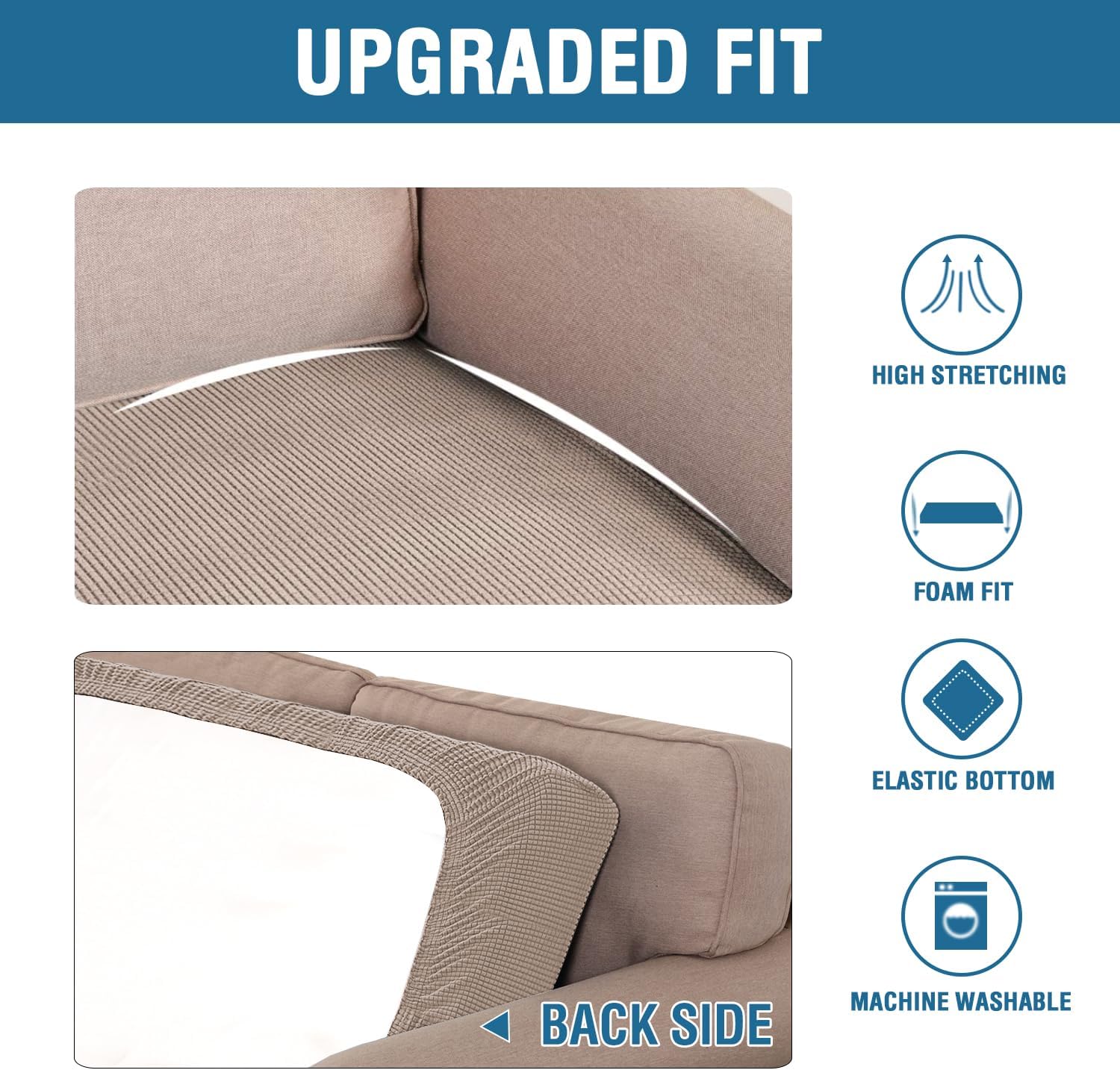 - GREAT FIT: Set of 1. This innovated cushion slipcover is crafted from durable and soft high stretch knitted jacquard fabric.Sofa Seat Cover(fit total sitting area between 60-86 inches). Feature one-size-fits-most, kindly measure before ordering. Suitable for both T cushion and Box cushion styles
