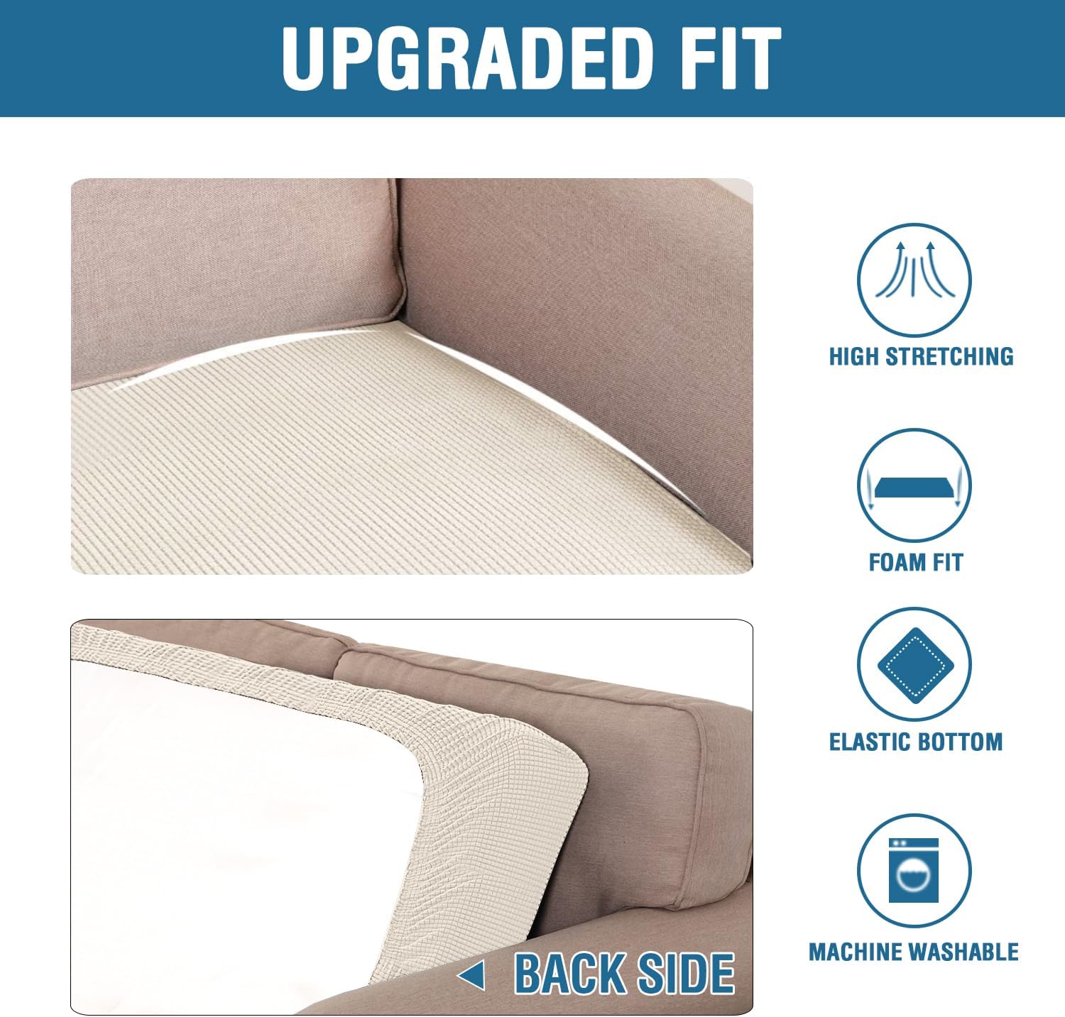 - GREAT FIT: Set of 1. This innovated cushion slipcover is crafted from durable and soft high stretch knitted jacquard fabric.Sofa Seat Cover(fit total sitting area between 60-86 inches). Feature one-size-fits-most, kindly measure before ordering. Suitable for both T cushion and Box cushion styles