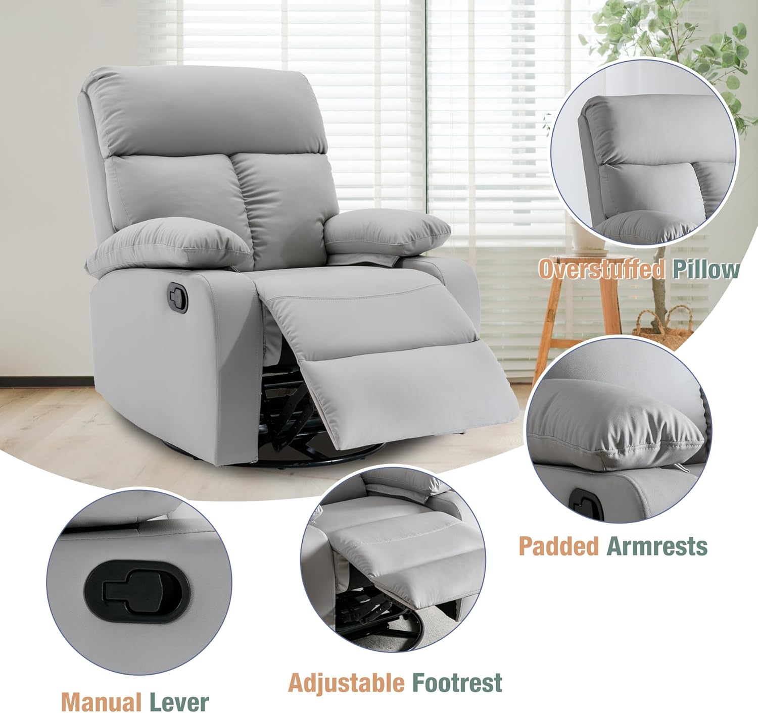 Swivel Rocker Recliner, Rocking Recliner Chair, Small Rocker Recliners for Small Spaces, Living Room, Bedroom, Nursery, RV, Light Grey